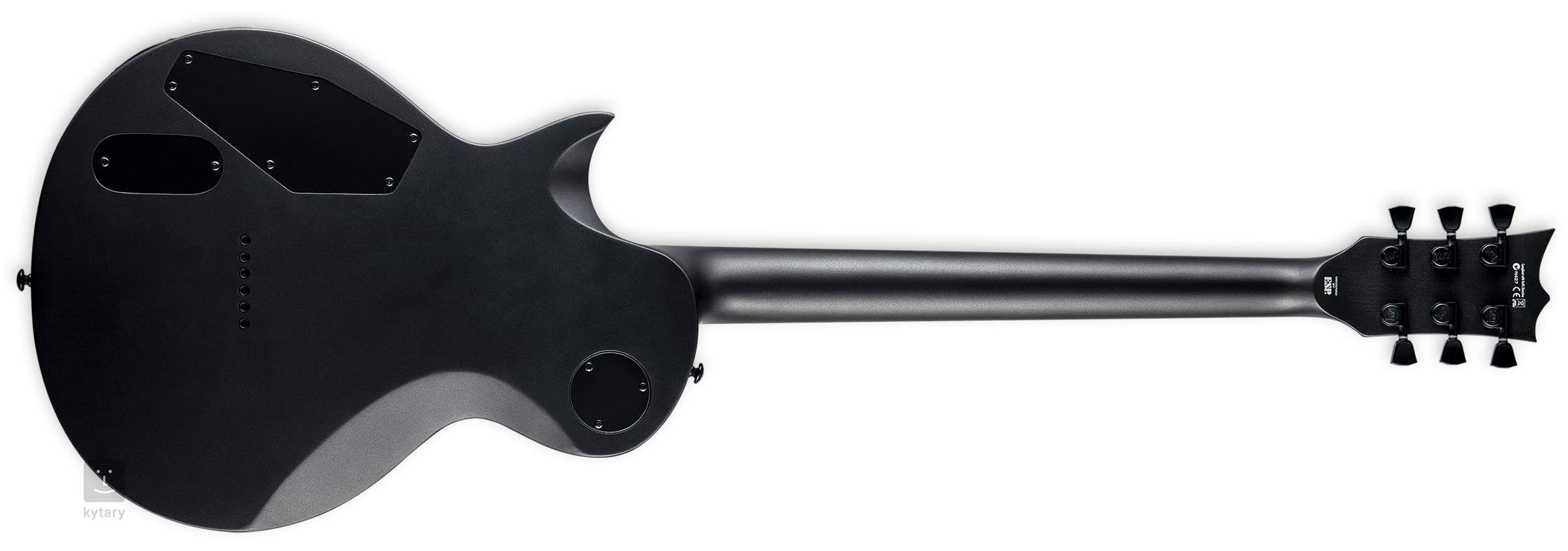 EC1000 BARITONE CHARCOAL METALLIC SATIN je elektrická barytonová kytara s delší menzurou šitá na míru hráčům, co si libují v hutném podladěném zvuku (kytara je podobně jako sedmistrunné modely laděna od H). Mahagonové tělo kytary zdobí javorový top (maple cap) a tmavá saténová úprava. Ke krku ze tří kusů mahagonu s konstrukcí set-thru, tj. krkem zapuštěným hlouběji do těla, je přilepen hmatník z ebenu makassar osazený čtyřiadvaceti pražci z nerezové oceli velikosti Extra Jumbo.
