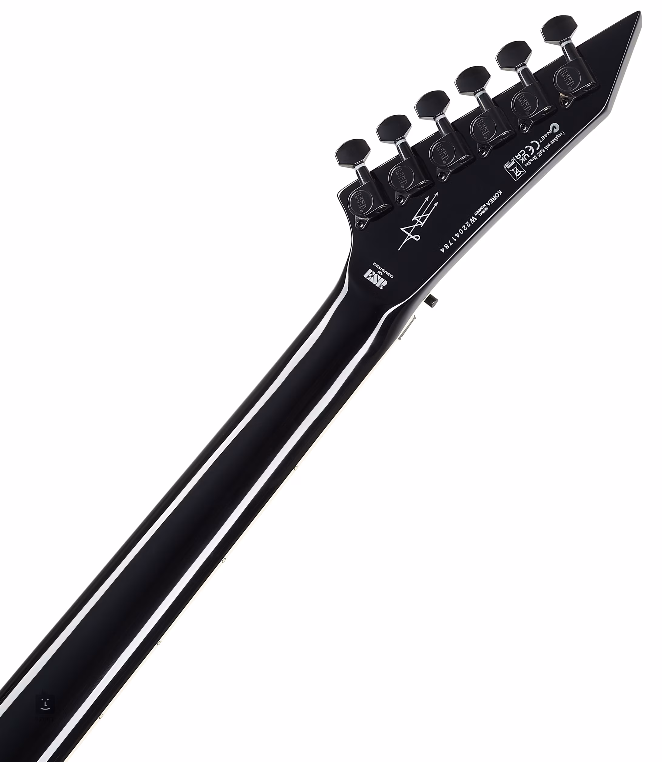 ESP LTD SD-2 BLK SAMMY DUET je signature model elektrické kytary Sammy Dueta z americké metalové formace Goatwhore. Konstrukce kytary je složena z mahagonových křídel a průchozího tenkého krku (profil Extra Thin U) ze tří kusů mahagonu. Plochu hmatníku z ebenu makassar rozděluje čtyřiadvacet pražců velikosti Extra Jumbo a perleťové polohové značky ve tvaru démantů. Boční luminiscenční tečky usnadňují orientaci na hmatníku i v temných koutech pódií.