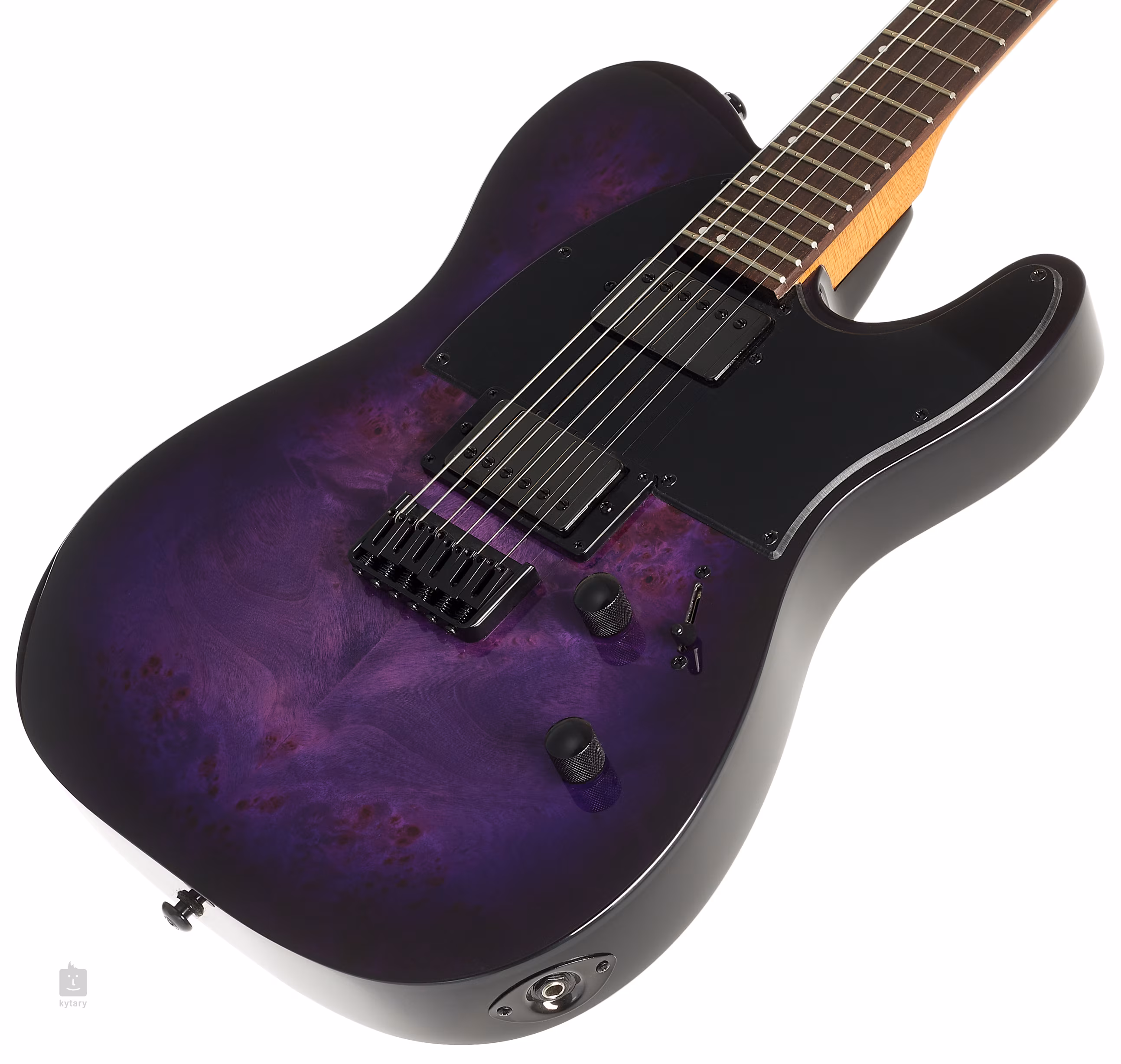 Topolové tělo modelu TE-200DX PURPLE BURST zdobí efektní vrchní dýha z kořenice topolu (poplar burl). K přišroubovanému krku z pečeného javoru (roasted maple) je přilepen palisandrový hmatník osazený čtyřiadvaceti pražci velikosti Extra Jumbo. Orientaci na hmatníku usnadňují offset poziční tečky.