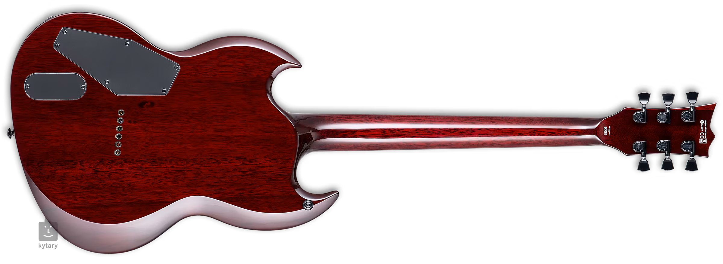 Stabilní ladění zaručuje uchycení strun v uzamykatelných mechanikách LTD a přes kobylku Tonepros Locking TOM s nastavitelnou výškou strun skrze tělo kytary.