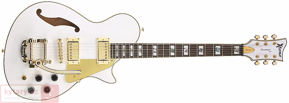 Pololubová elektrická kytara ze série Xtone Paramount, tělo mahagon, horní deska z mahagonu, krk javor, lepený, konfigurace snímačů HB – HB (Seymour Duncan Alnico II Pro), kompenzovaný nultý pražec Earvana, ladící mechaniky Grover, Bigsby Licensed vibrato, 22 pražců, provedení Pearl White