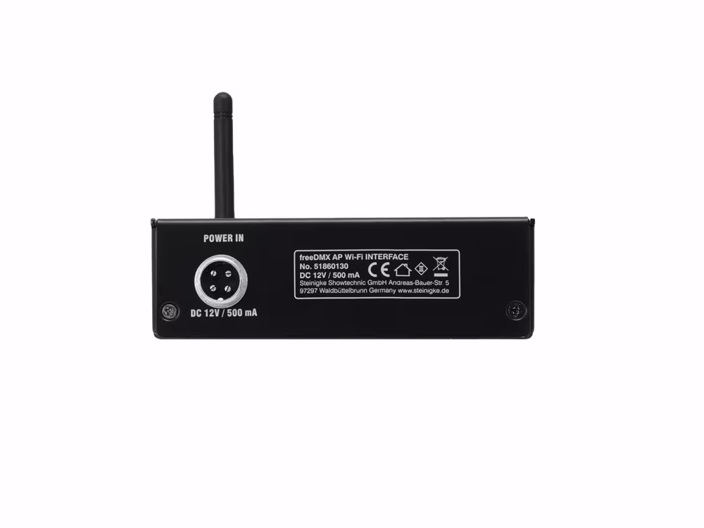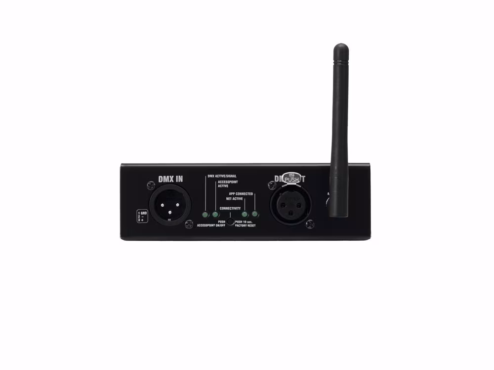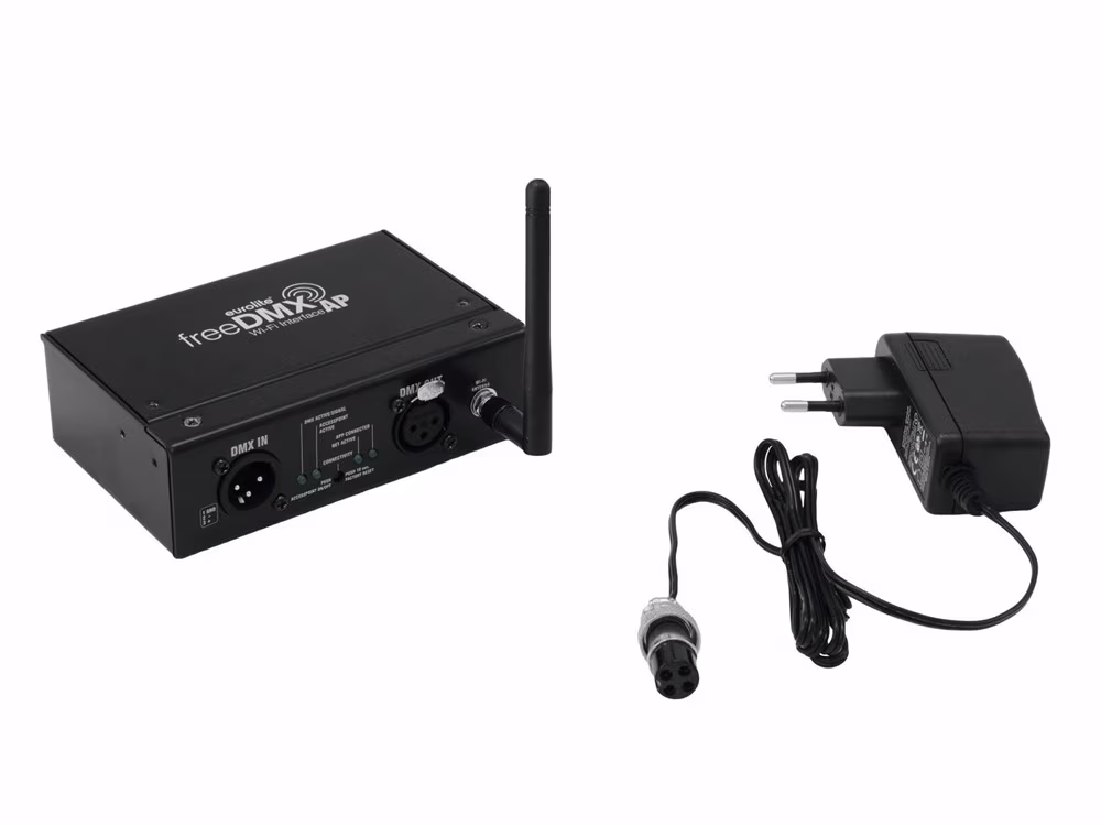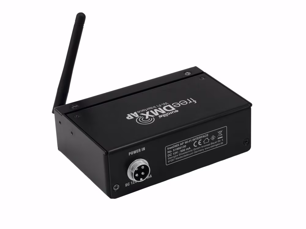Bezdrátové DMX rozhraní pro ovládání světel pomocí chytrého telefonu či tabletu. Přijímá ovládací signály přes síť a převádí je do DMX signálu. Pracuje s iPhony, iPady a Android tablety. Ovládejte vaše DMX zařízení pohodlněji než kdykoliv předtím s aplikací LIGHT´J, která je zdarma. LIGHT´J nyní také podporuje DMX zařízení všech ostatních výrobců. Knihovna světelných produktů v aplikaci je průběžně doplňována a nyní obsahuje přes 300 zařízení Eurolite a Futurelight. Jednoduše můžete přidat nové zařízení přes vstupní editor. Aplikace LIGHT´J je zdarma ke stažení z Play store a App store a je optimalizována pro tablety od 7". Lze ji nastavovat přes integrovaný webserver. WLAN standard IEEE802.11 b/g/n. Neutrik 3-pin XLR konektory pro DMX IN / DMX OUT. Schopnost DMX feed-through. Indikační LED diody pro zobrazení stavu, připojení a zapnutí aplikace. Napájení přibaleným adaptérem. Pracuje s programem FreeStyler verze 3.6.32 (Windows PC) a novější. Vyrobeno v Německu.