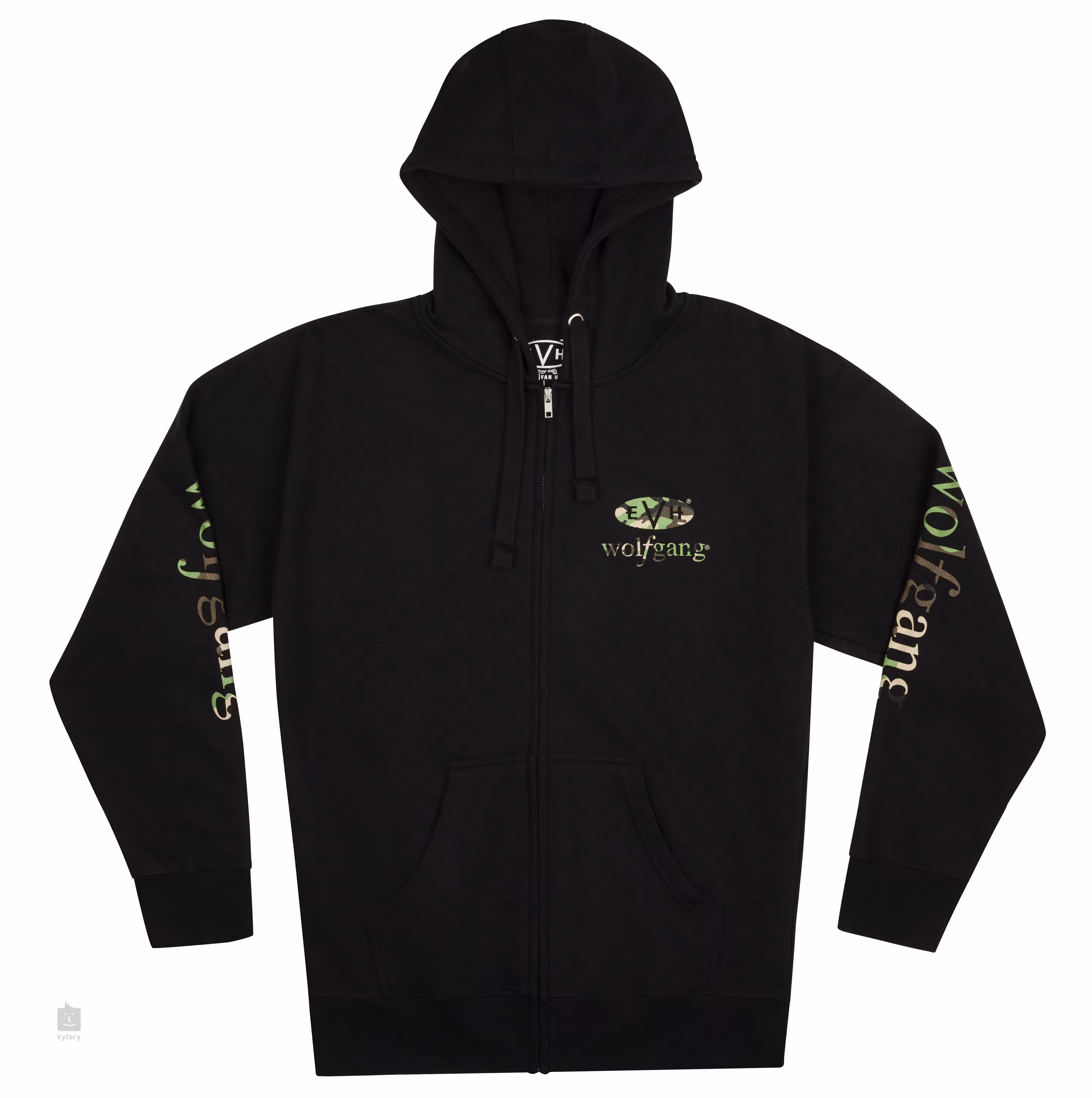 Mikina s kapucí a zapínáním na zip EVH Wolfgang Black and Camo Hoodie zhotovená ze 100% bavlny. Mikina je k dostání v různých velikostech.