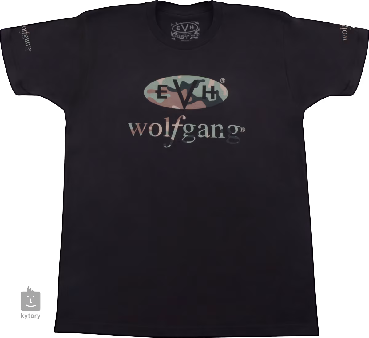Černé tričko s maskáčovými logy EVH a Wolfgang, které jistě potěší každého fanouška této firmy.