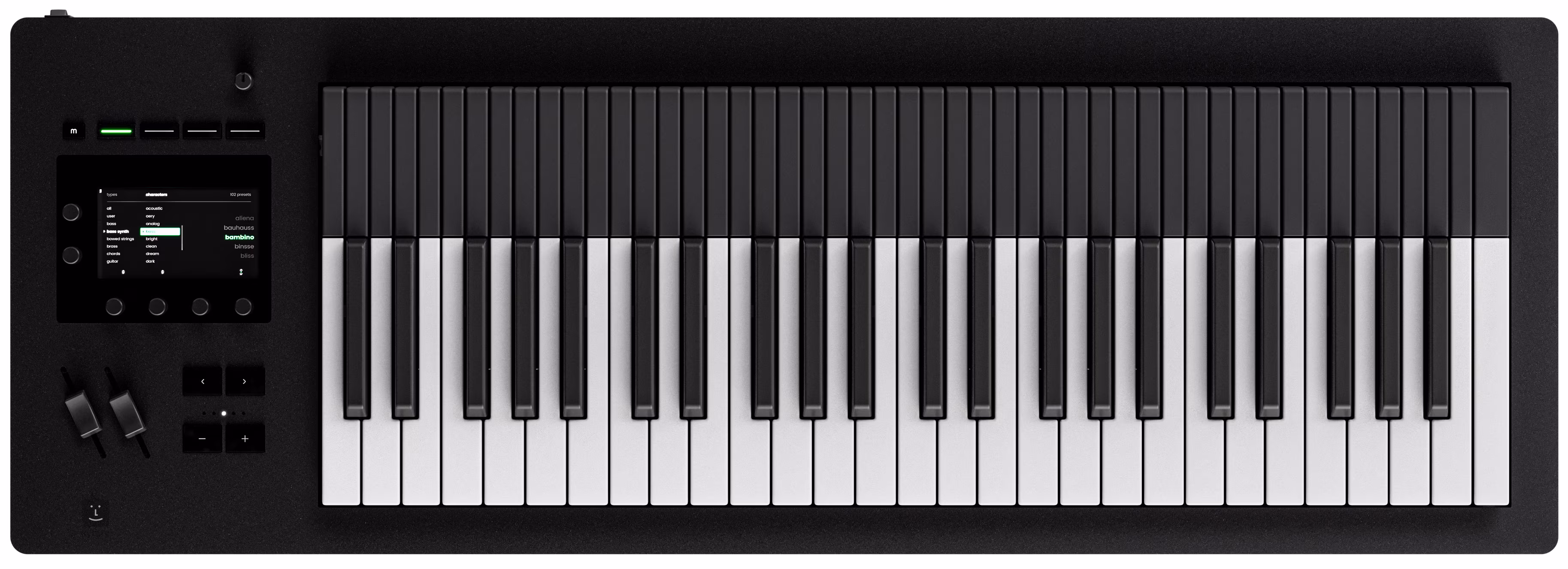 Základem nástroje je výkonný zvukový engine EaganMatrix, vyvinutý ve spolupráci s Haken Audio, který nabízí hlubokou modulární syntézu reagující na každý detail vaší hry. Každá klávesa snímá samostatně rychlost úhozu, aftertouch, tlak i horizontální pohyb, což umožňuje plynulé přechody mezi tóny, přirozené vibrato nebo dechové a smyčcové artikulace bez nutnosti použití speciálních ovládacích prvků či pedálů. K dispozici jsou stovky vestavěných presetů (580 továrních a 2048 uživatelských slotů), které demonstrují možnosti nástroje a umožní vám se inspirovat od jiných hudebníků – k dispozici je široké spektrum zvuků od realistických akustických tónů až po futuristické sonické plochy jako ze sci fi filmu.