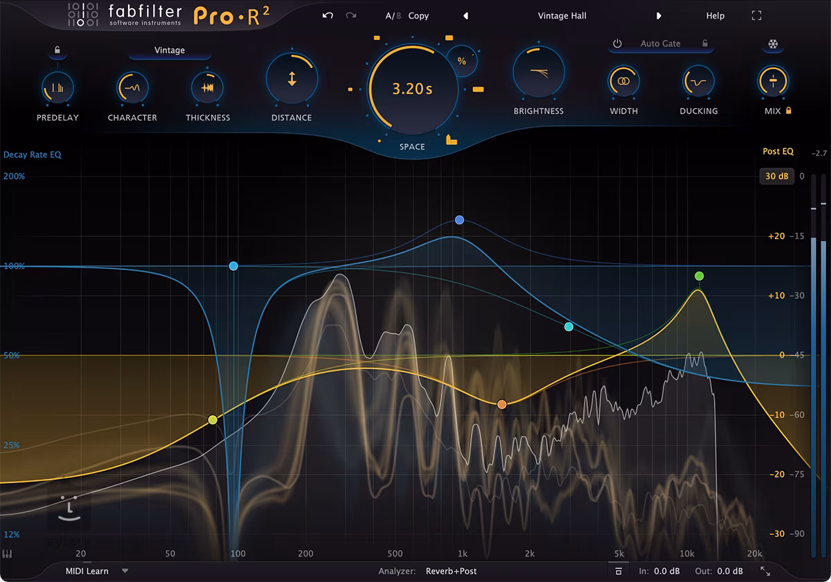 Reverb jako jeden z nejpoužívanějších efektů ve světě zvuku může mít nejrůznější podoby a příchutě. FabFilter Pro-R 2 vyniká vysokou kvalitou zvuku, dokáže obnovit přirozené prostory i klasické vintage a plate reverby, které dokonale sedí v mixu.
