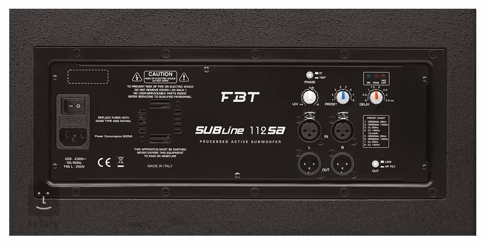 FBT SUBLINE 112SA je aktivní subwoofer o špičkovém výkonu 1400 W.