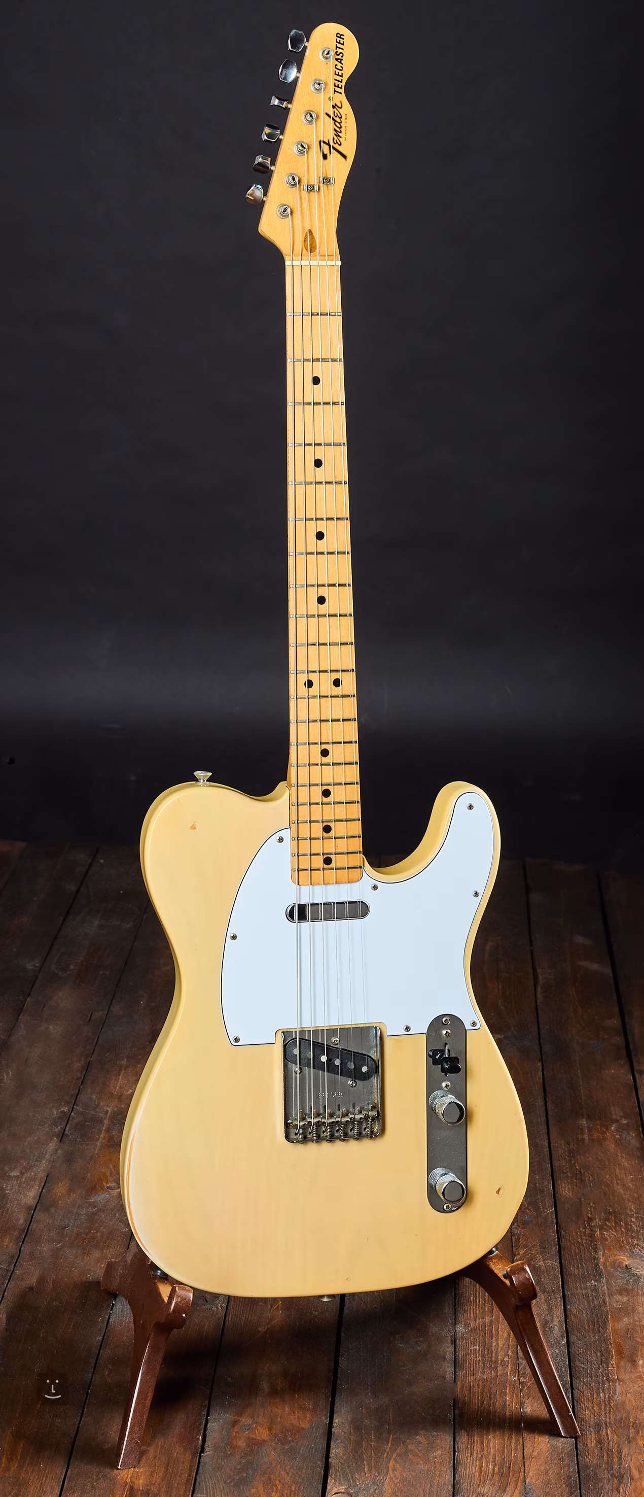 Nádherný kus rockové historie, telecaster z roku 1975, vyrobený v původní továrně ve Fullertonu v Kalifornii.