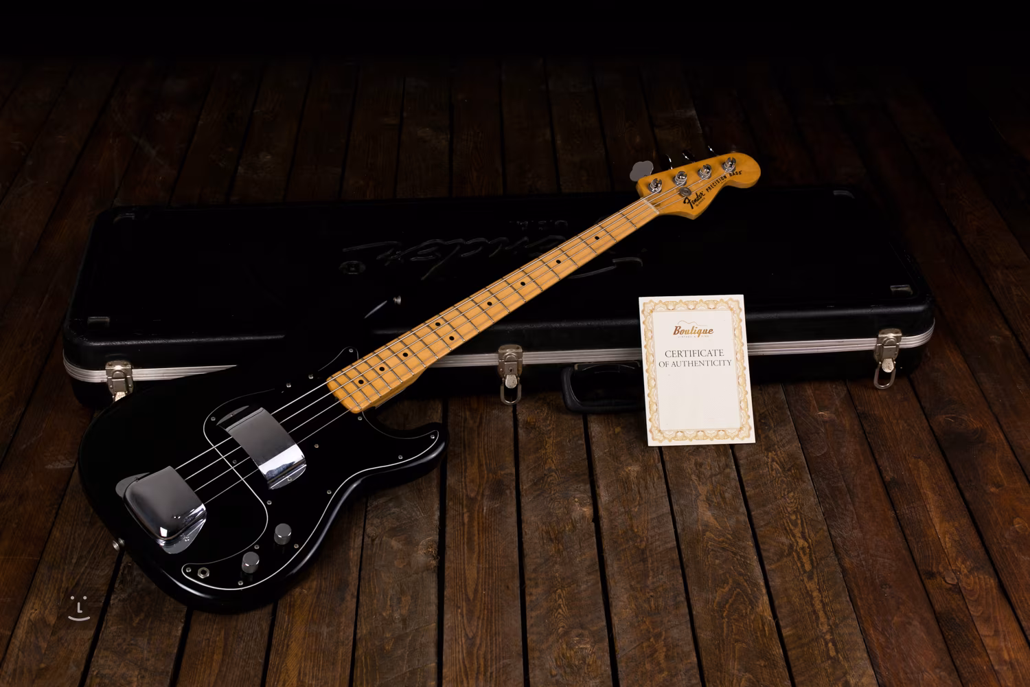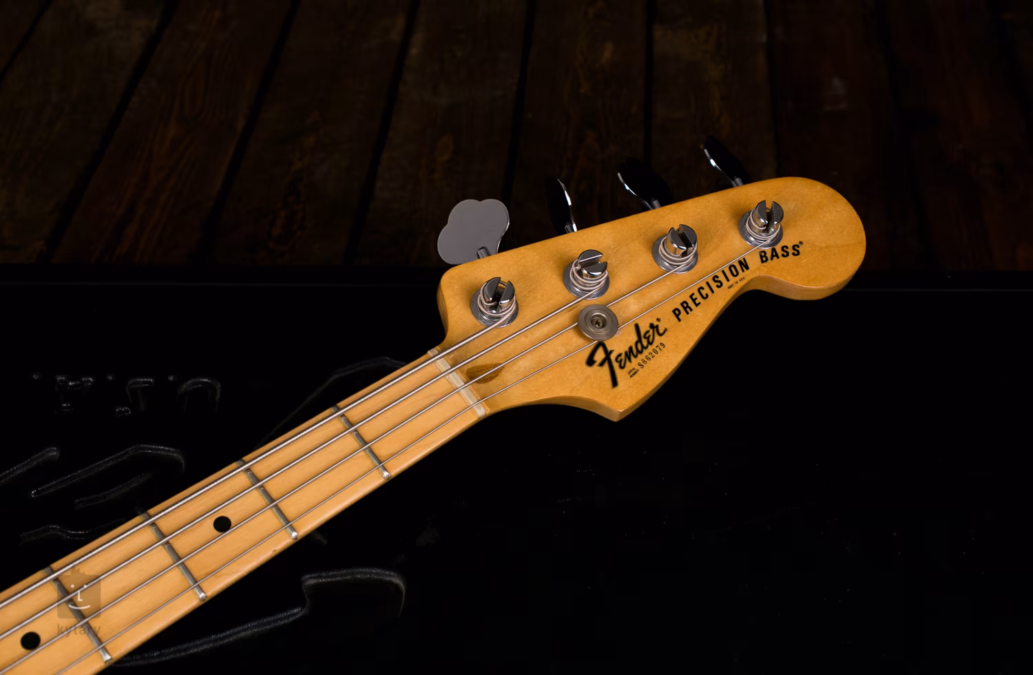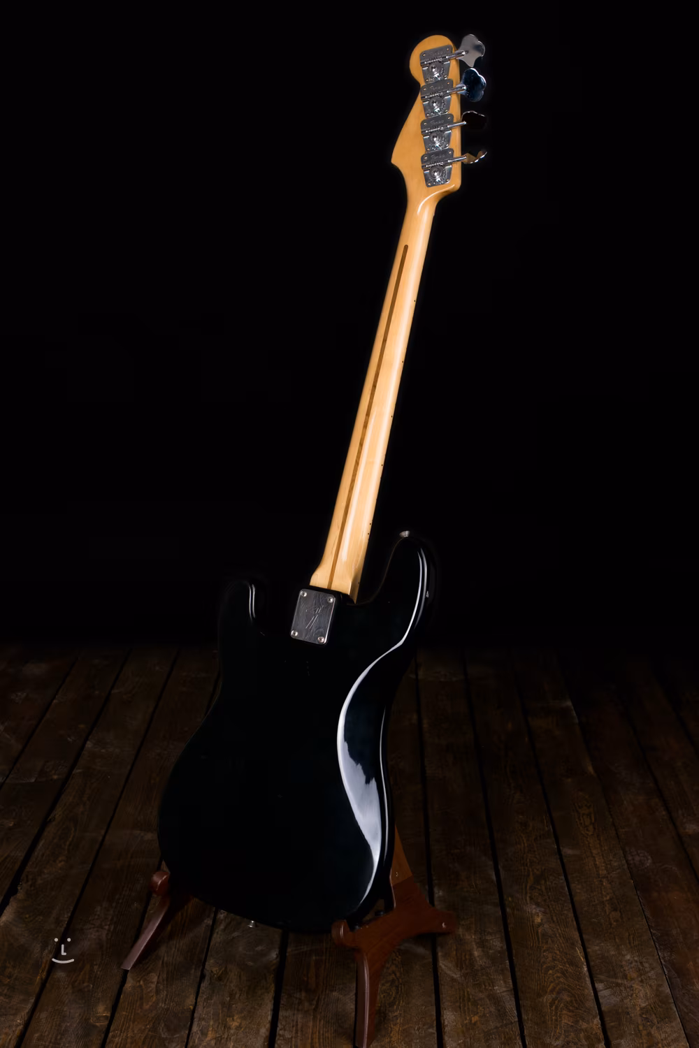 Nádherný precision americké, tedy původní výroby v takřka originálním stavu čeká na svého nového majitele. Tato basa je prakticky jako nová, i když má z nepochopitelných důvodů krk i tělo s odlišným sériovým číslem. Oba díly jsou originální a lze je datovat do přelomu let 1977/78. Pravděpodobně jde o chybu továrny nebo třeba výměnu dílu v rámci reklamace. Přes to jsou všechny díly na nástroji původní a ten je v prefektním hratelném i kosmetickém stavu.