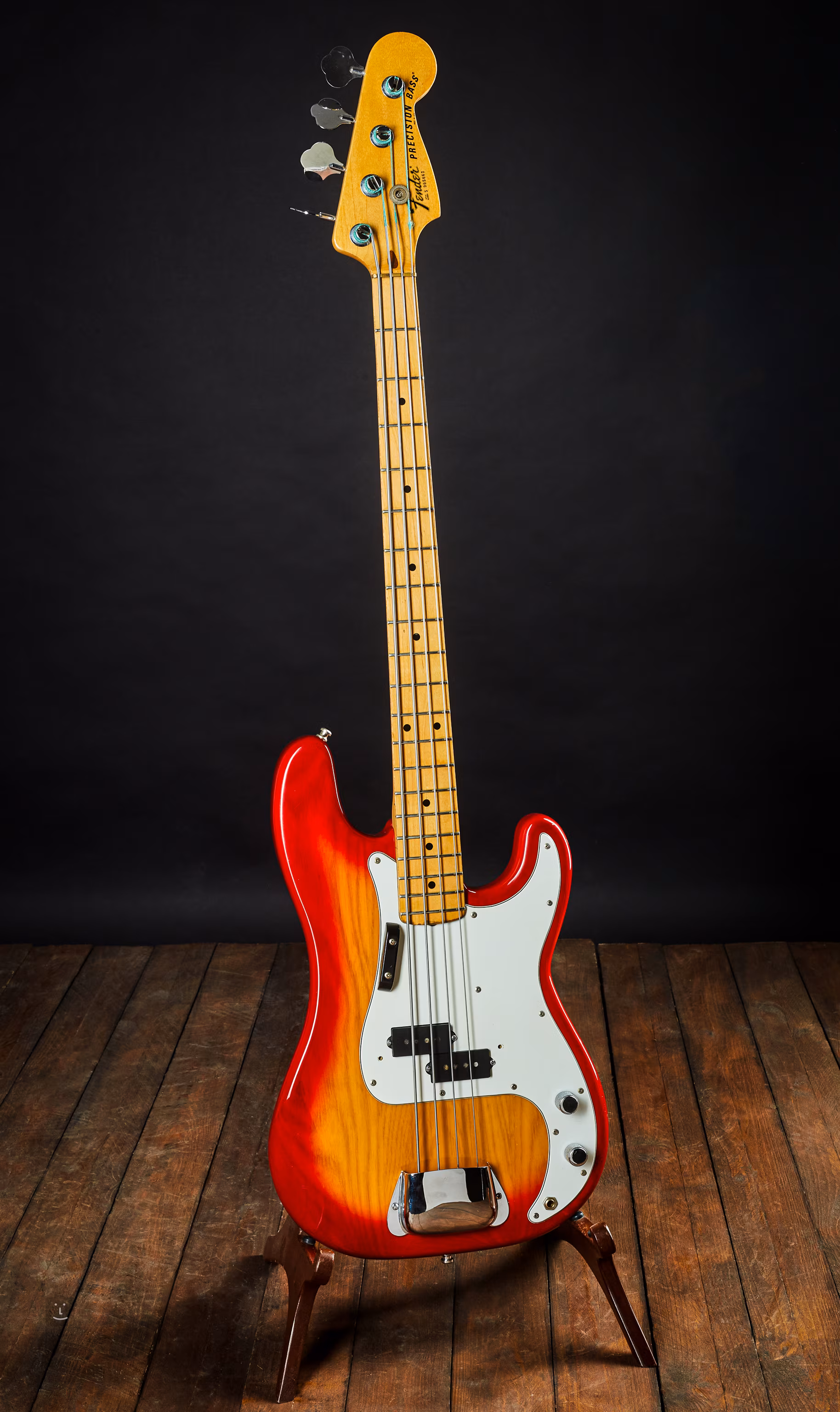 Vintage Precision Bass pocházející ještě z původní továrny v americkém Fullertonu. Vyroben byl zřejmě v roce 1981, je označen typickým S-sériovým číslem.