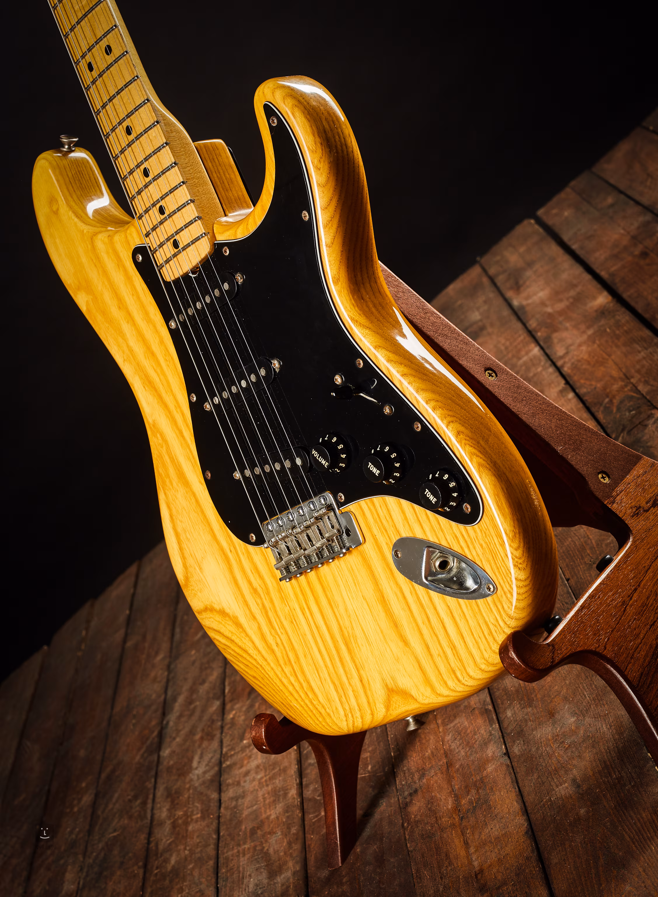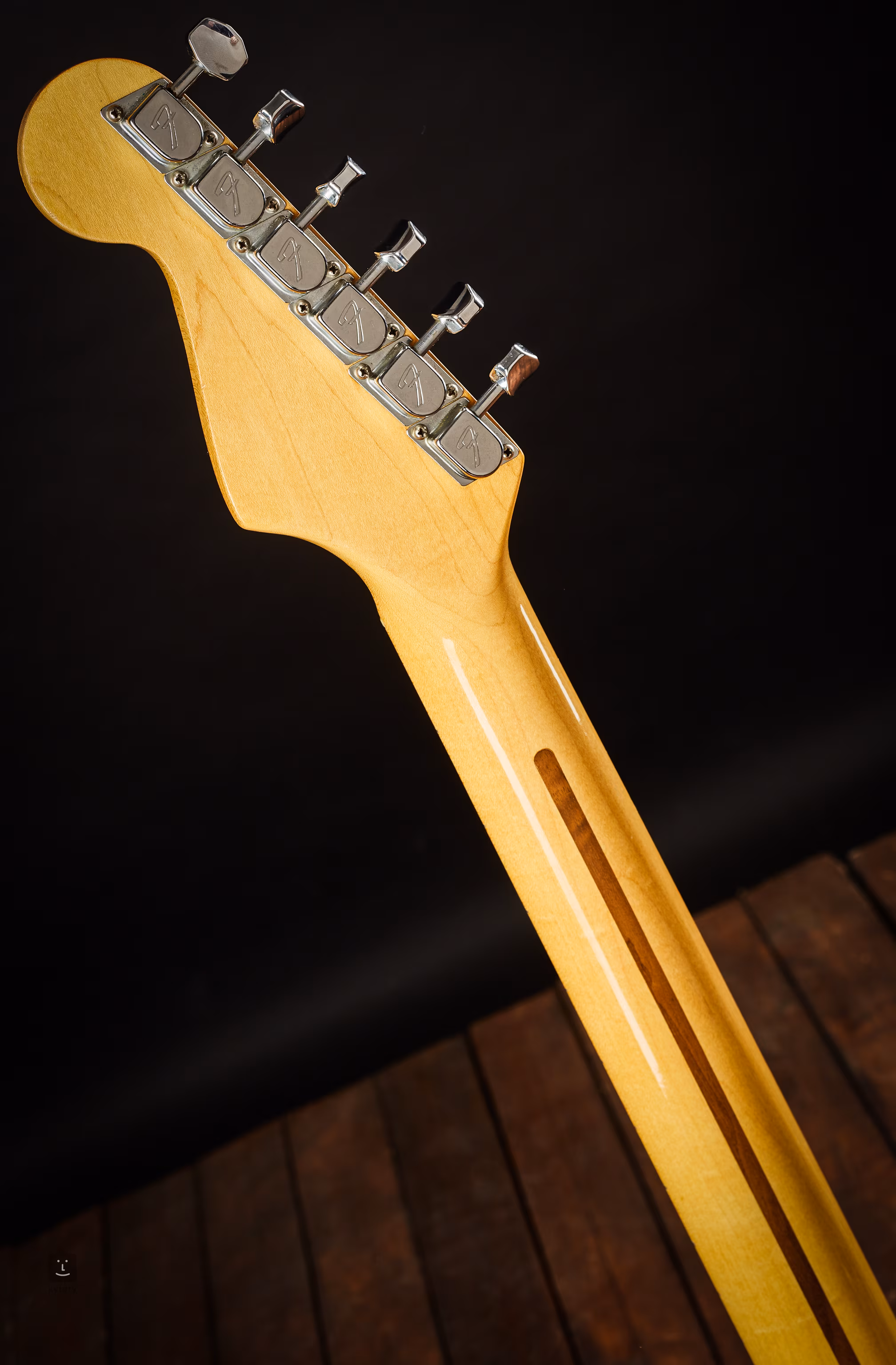 Jeden z posledních stratocasterů vyrobených v USA továrně Fender v kalifornském Fullertonu. Sběratelská i hráčská kytara v zajímavé, téměř raritní konfiguraci s malou hlavicí (á la 60. léta) a čtyřmi šrouby ve spoji krku.