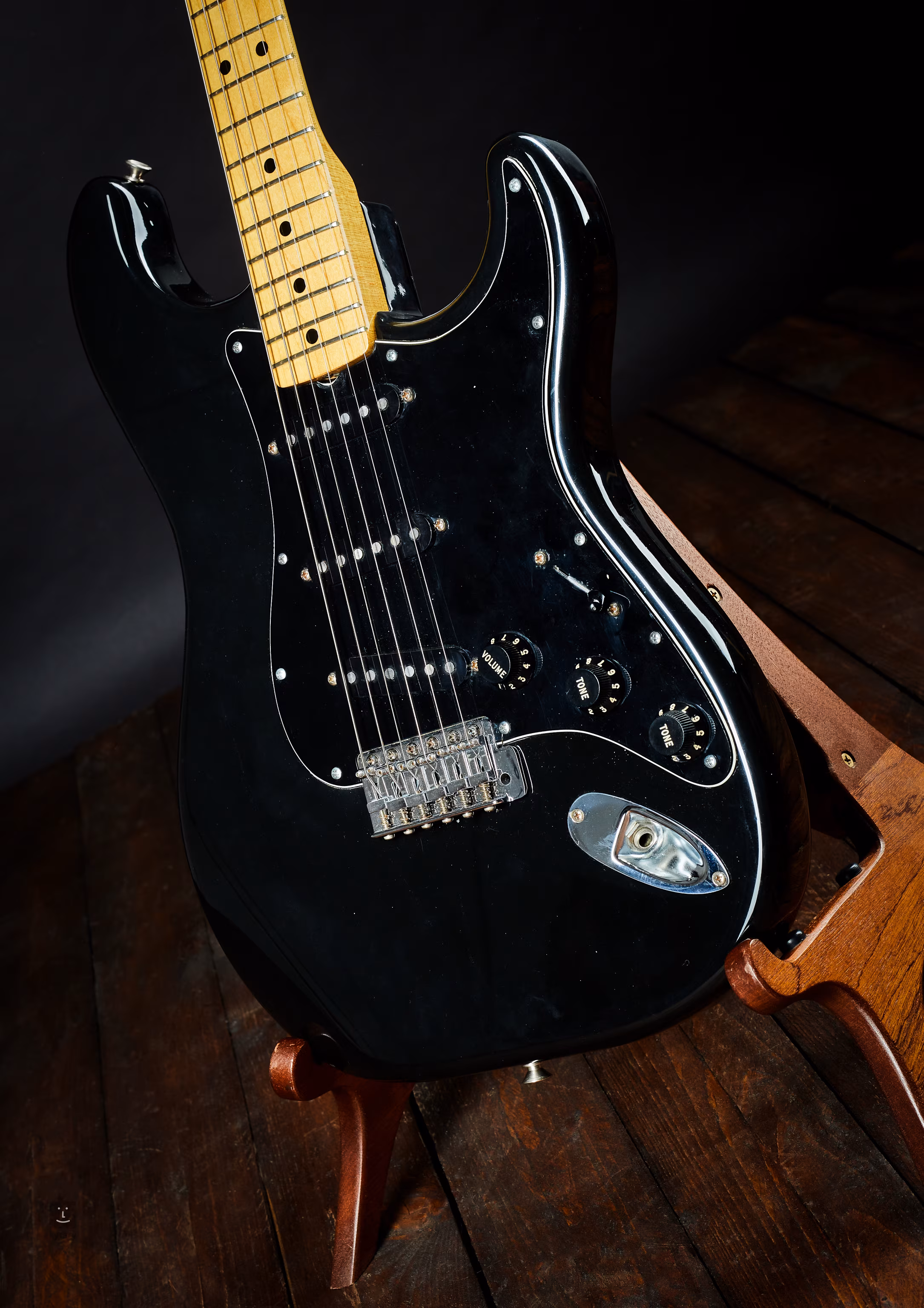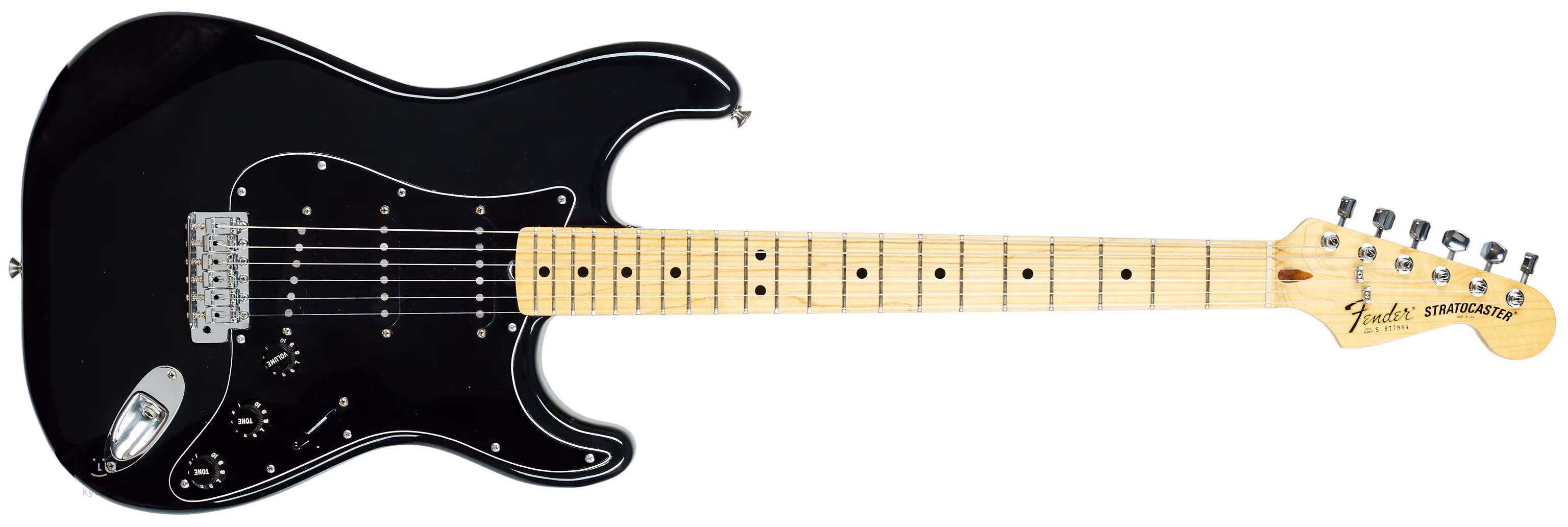 Tento černý stratocaster má oproti předchozím kytarám ze 70. let čtyři šrouby ve spoji krku a nepatrně tenčí hlavici. Jinak je kytara konstrukčně téměř beze změn oproti předchozím generacím. Tělo je olšové, krk javorový. Snímače jsou už novější s plastovými spodky. Zvukově jde o typický strat, jehož zvuk přenáší trojice single snímačů, díky nim nabízí širokou paletu tónů.