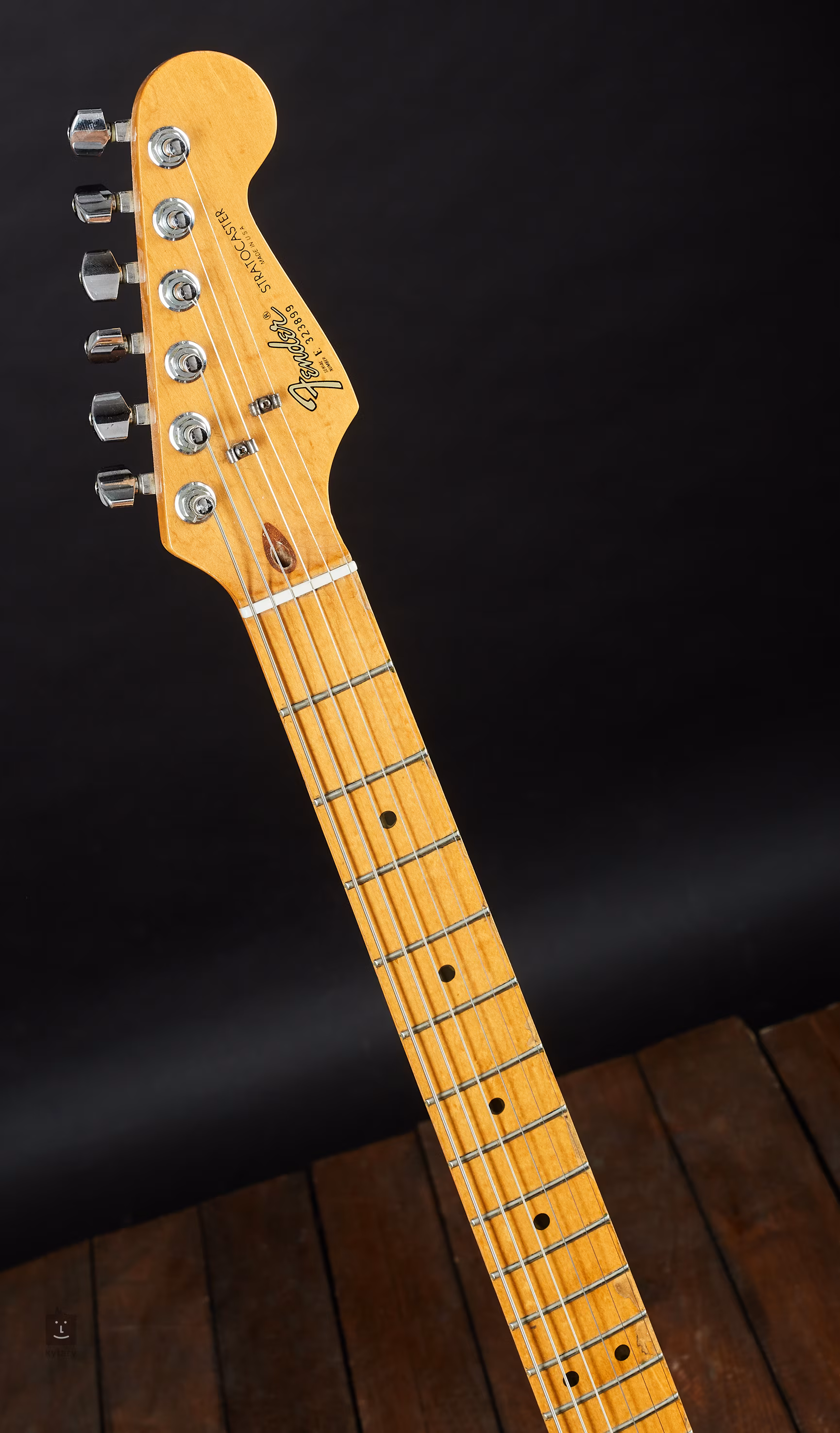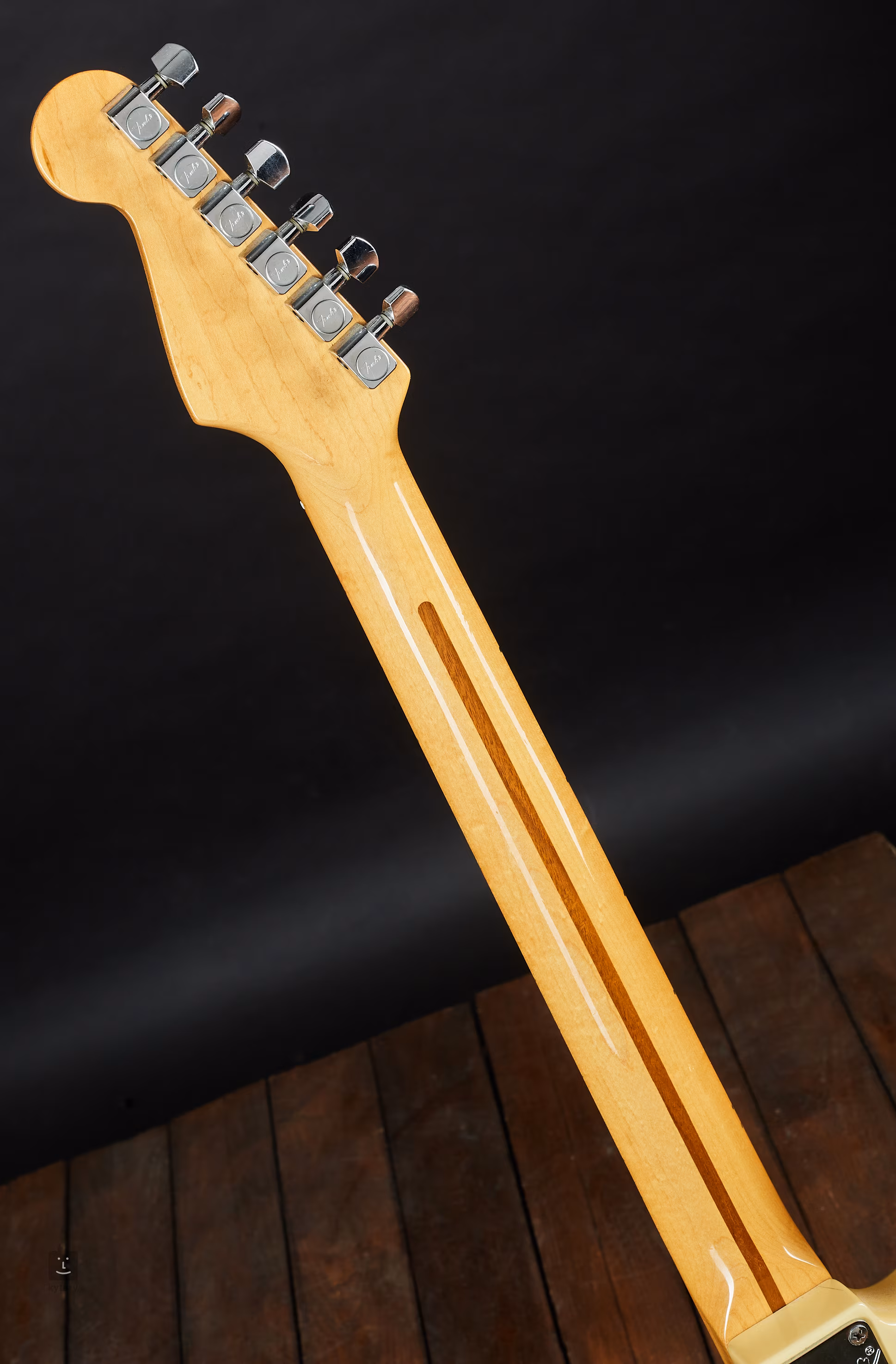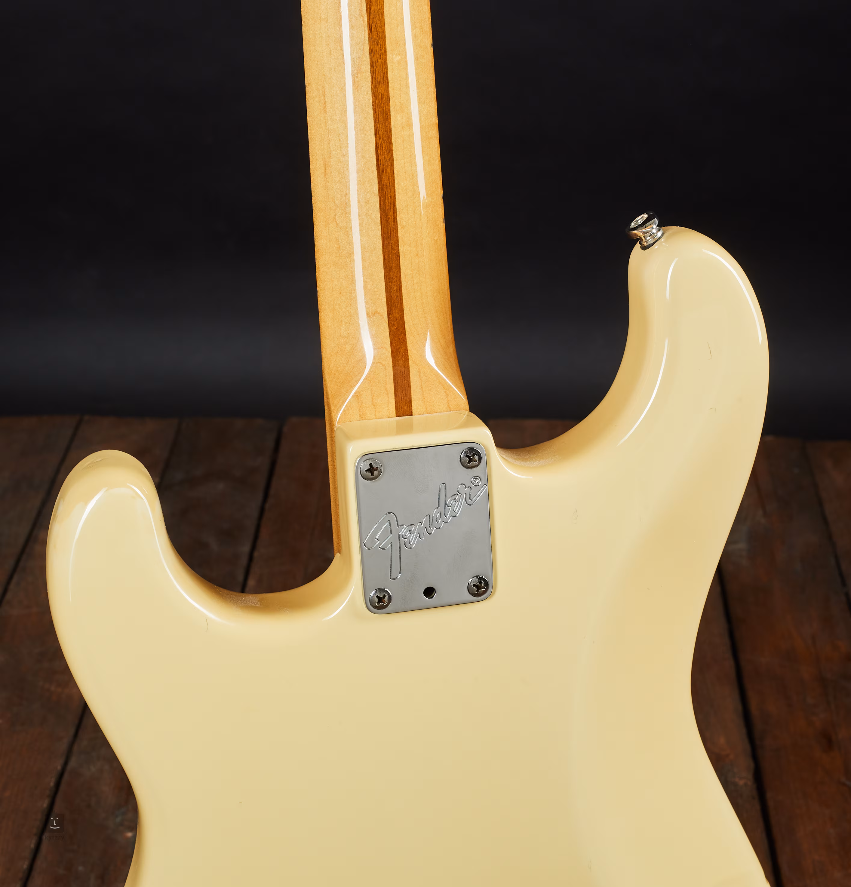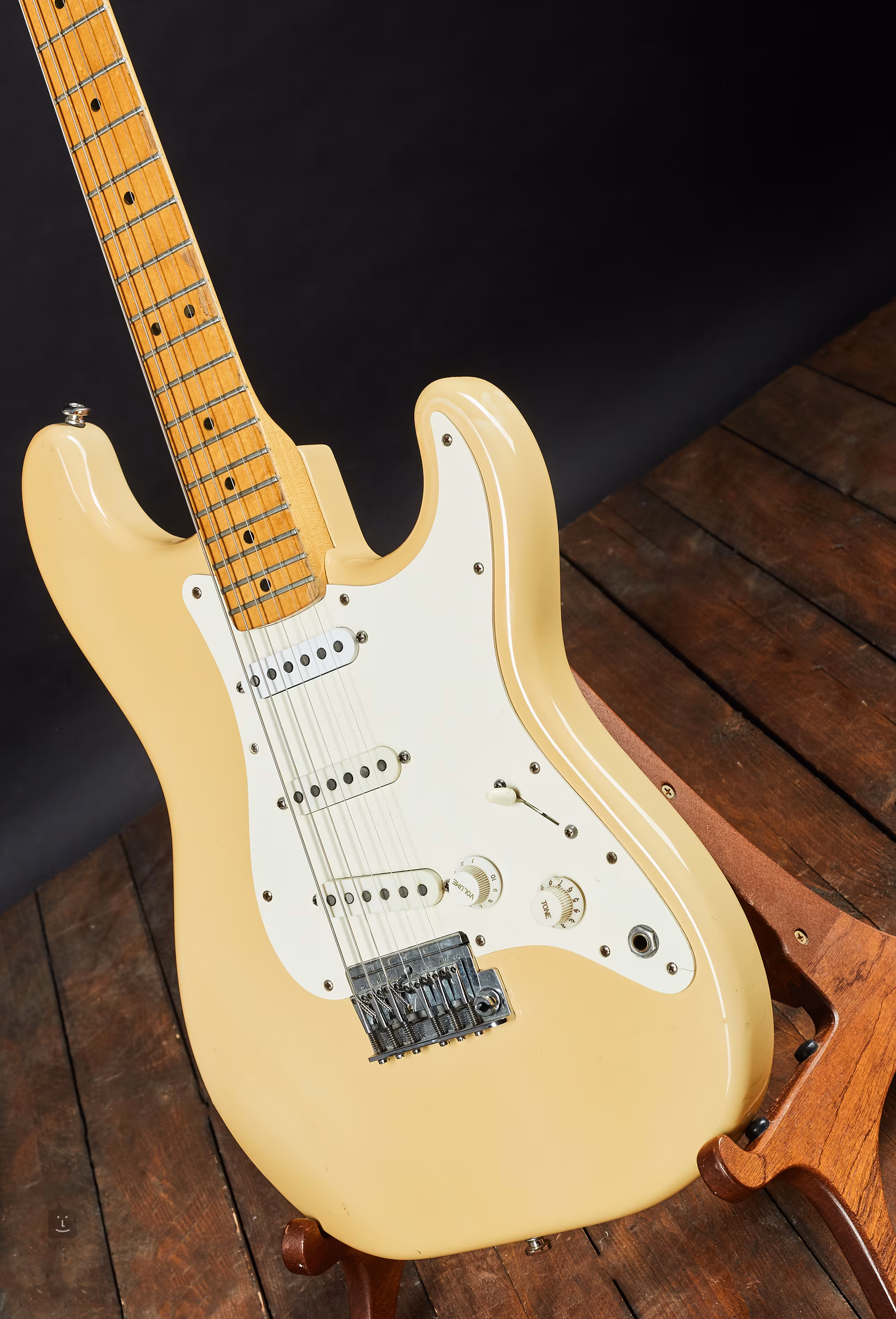 Dan Smith Stratocaster v barvě Olympic White, která po letech získala krémový odstín. Jedná se o jeden z posledních nástrojů vyrobených v původní továrně Fenderu v kalifornském Fullertonu.