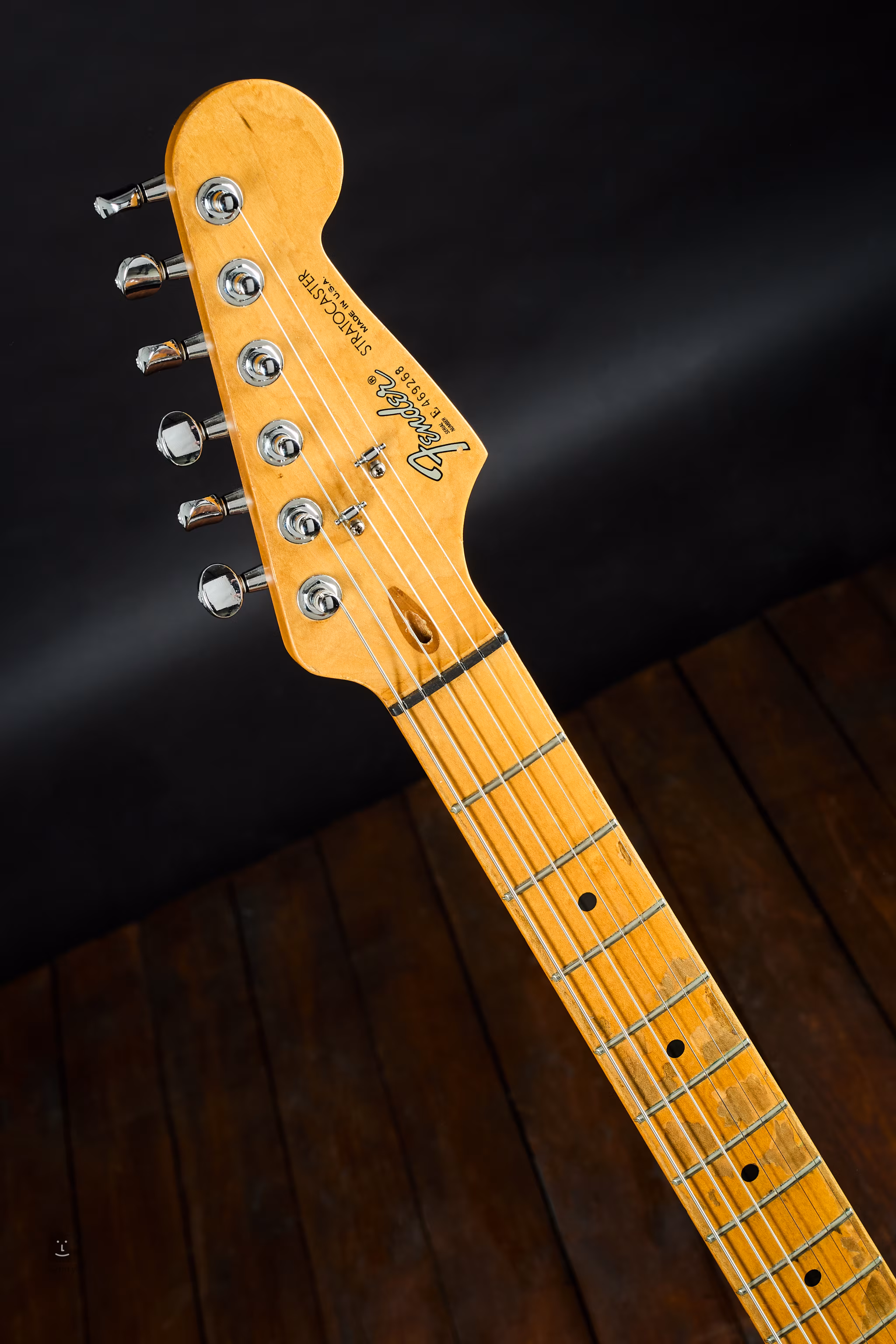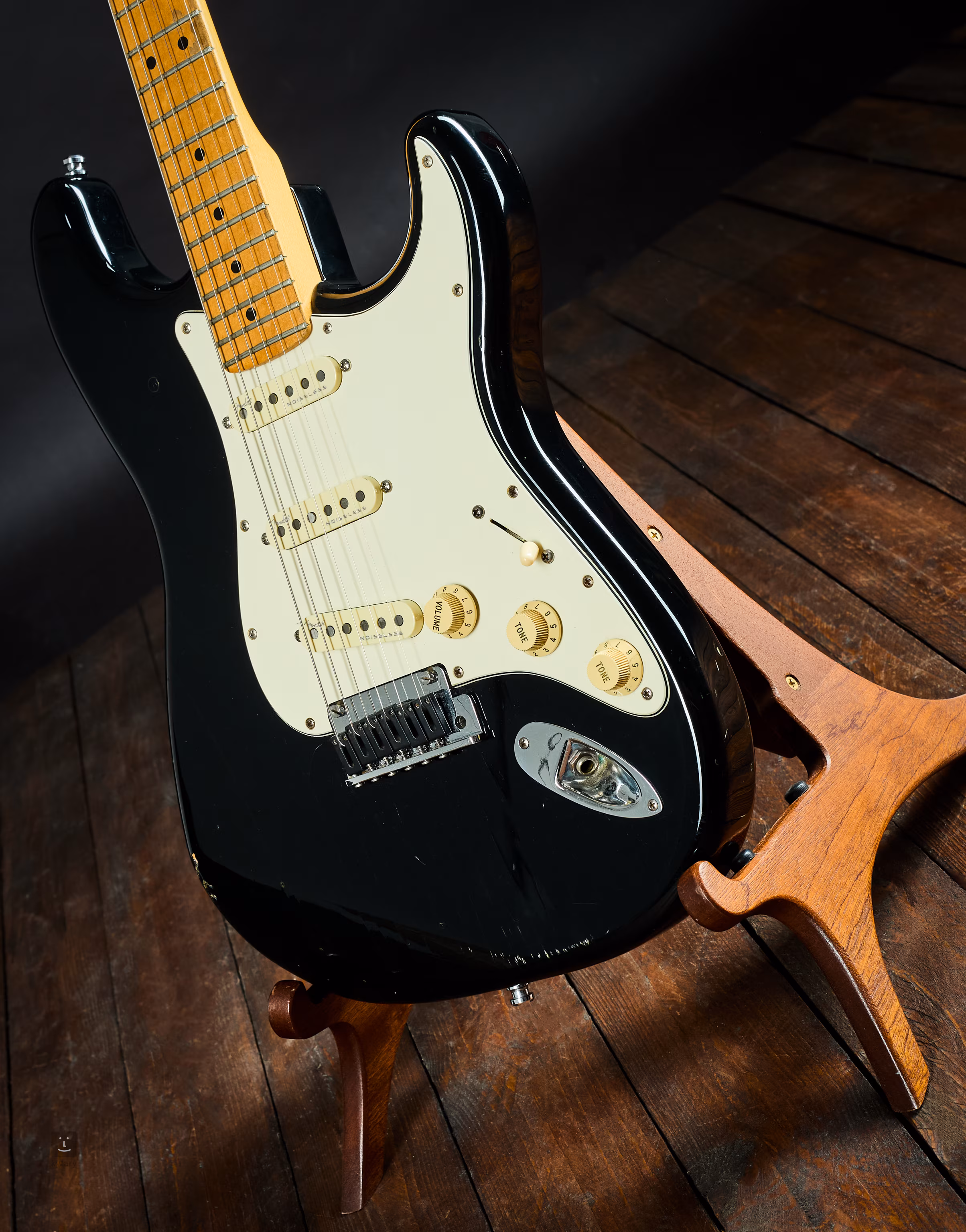 Na nástroji naleznete novou American Standard kobylku s upgradovanými teflonovými kameny. Hmatník nese větší množství stop po používání, přesto je v překvapivě perfektním fukčním stavu, dokonale rovný a plně hratelný ve všech polohách. V laku těla najdete také stopy po používání a větší množství drobných odřenin. Původní ladiče byly odborně vyměněny za též velmi kvalitní Gotoh. Původní snímače Lace Sensor jsou vyměněné za moderní obdobu: profesionální bezbrumové Fender Noiseless.