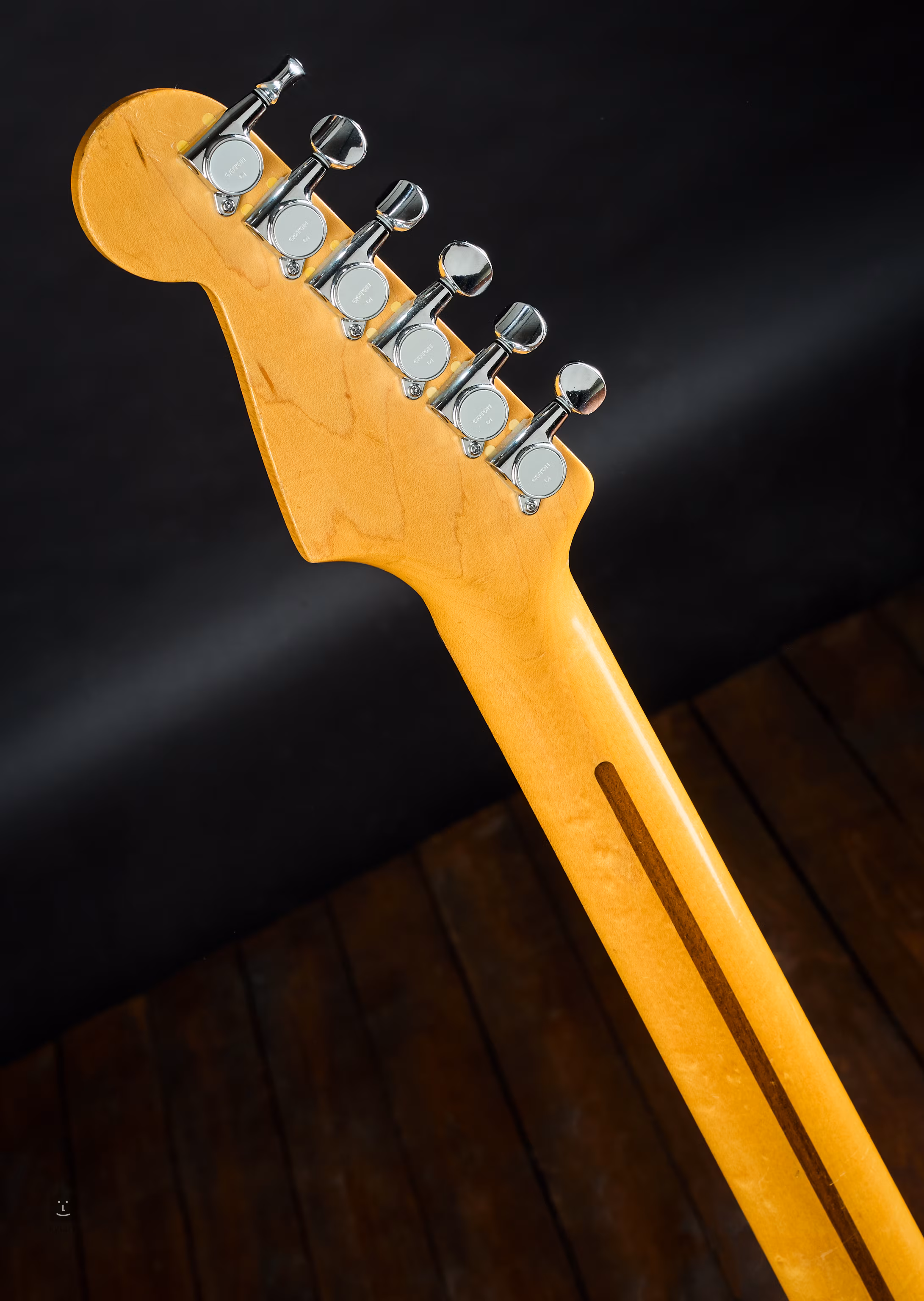 Nástrojů značky Fender vyrobených v polovině 80. let není na světě mnoho a pomalu se stávají raritami. Po roce 1983 Fedner přecházel do vlastnictví nových majitelů, kteří postupně opouštěli výrobu ve Fullertonu a zakládali novou továrnu v Coroně a většina produkce značky z té doby pocházela z Japonska. Tato éra není dodnes přesně zmapovaná. Nástroj, který nabízíme, je vyrobený v USA mezi lety 1984 - 1987 a je zřejmě jedním z nástrojů, které těsně předcházely řadě American Standard uvedené v roce 1988.
