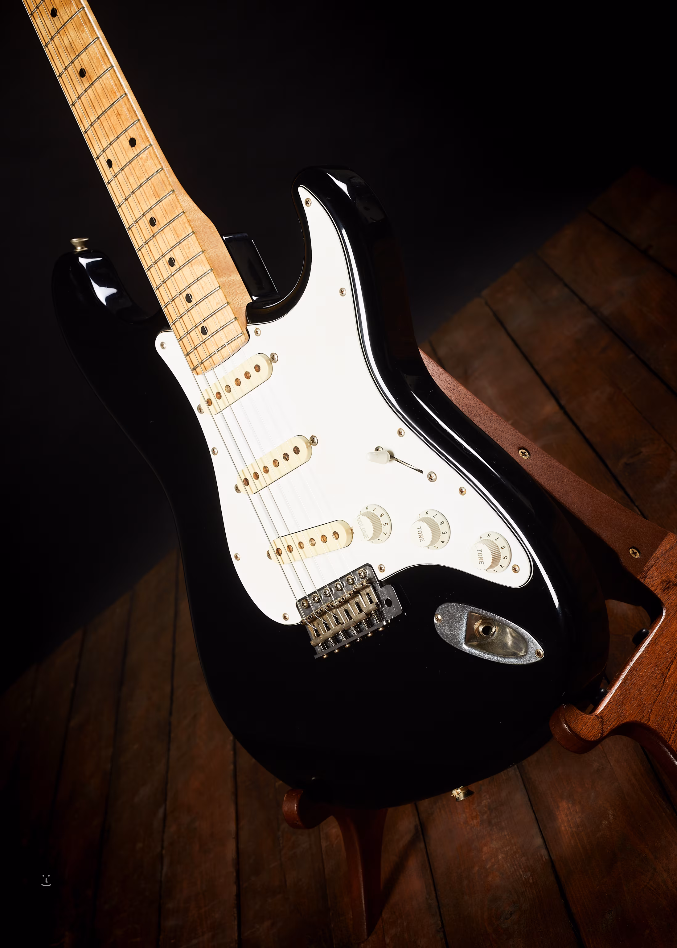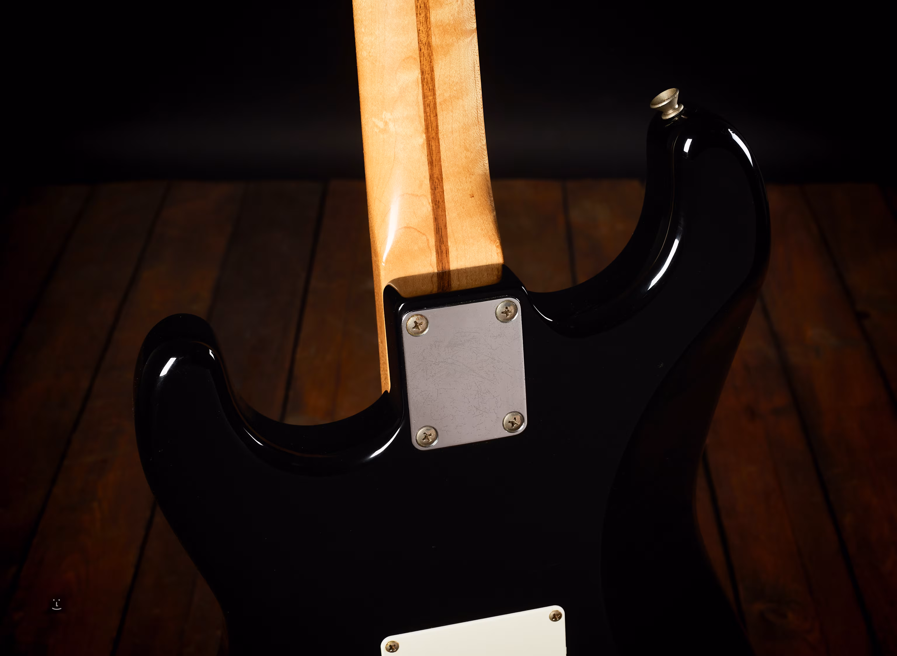 Originální verze japonského stratocasteru z konce 80. let. Kromě replik vintage modelů jako ST57 nebo ST62 se v Japonsku vyráběla také tato, tehdy současná varianta modelu - s moderními silnějšími snímači, 22 pražci, pětipolohovým přepínačem, šroubem výztuhy na hlavici a krkem s pohodlným C profilem. Javorový hmatník má vintage radius 7.25" a vyniká důslednou ergonomií. Hlavici zdobí drobný nápis Made in Japan, pro kterou je takováto kytara vyhledávaná.