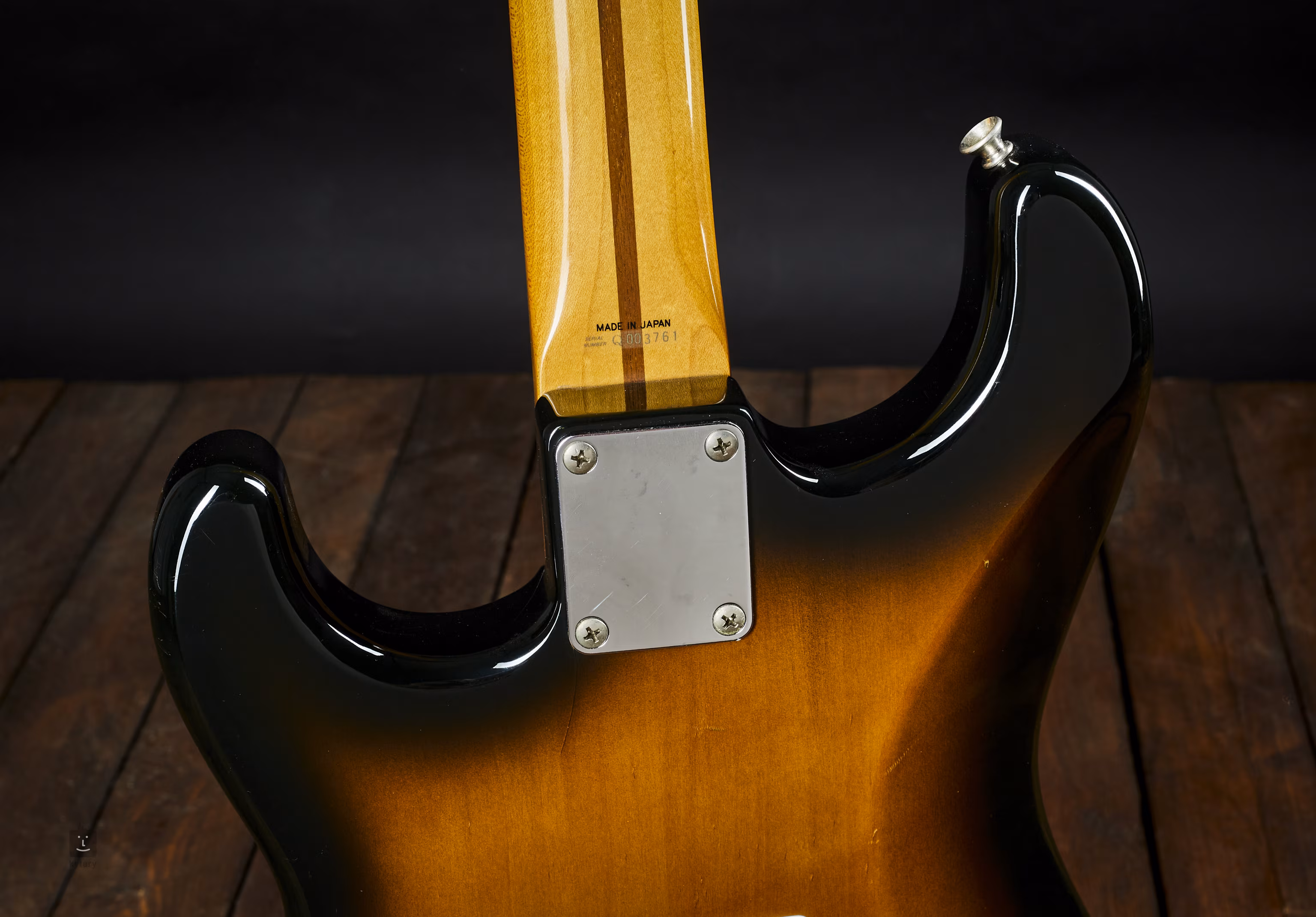 Nástroj z vyhledávané éry japonské výroby Fenderu z přelomu 80. a 90. let v továrně Fujigen. Vyhledávaná nálepka "Made in Japan".