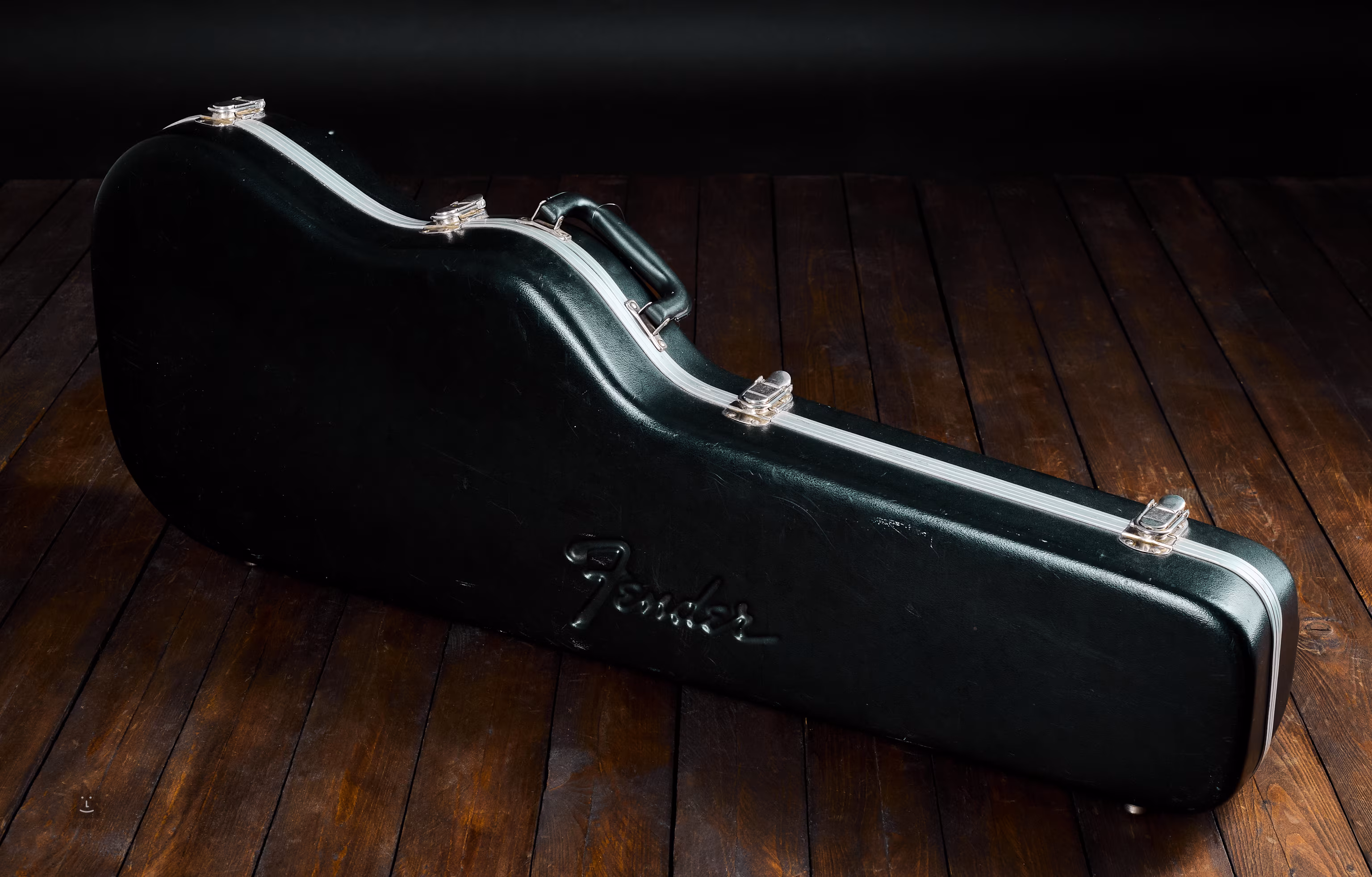 Nástroj byl v minulosti používán celkem pravidelně, za což vděčí několika ťukacům na hraně krku, pražce jsou trochu vymačkané, ale stále funkční. Ke kytaře je původní kufr Fender.