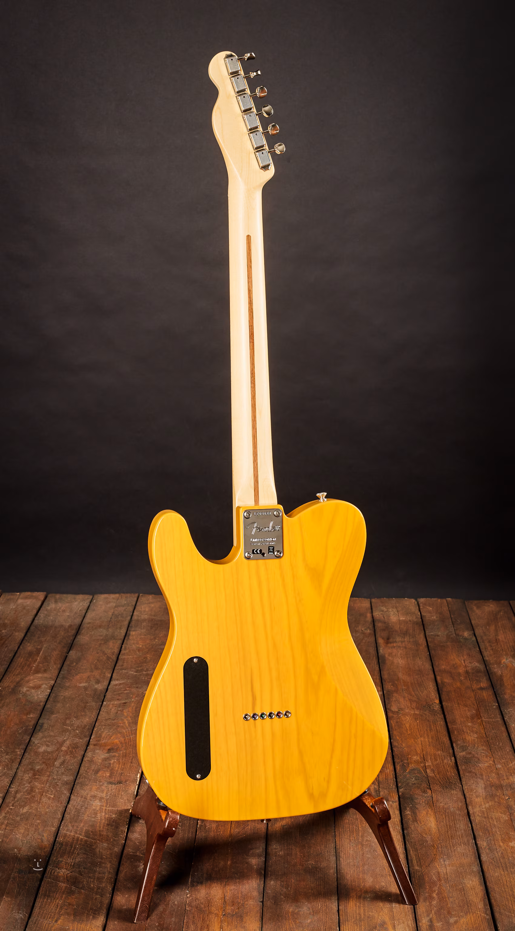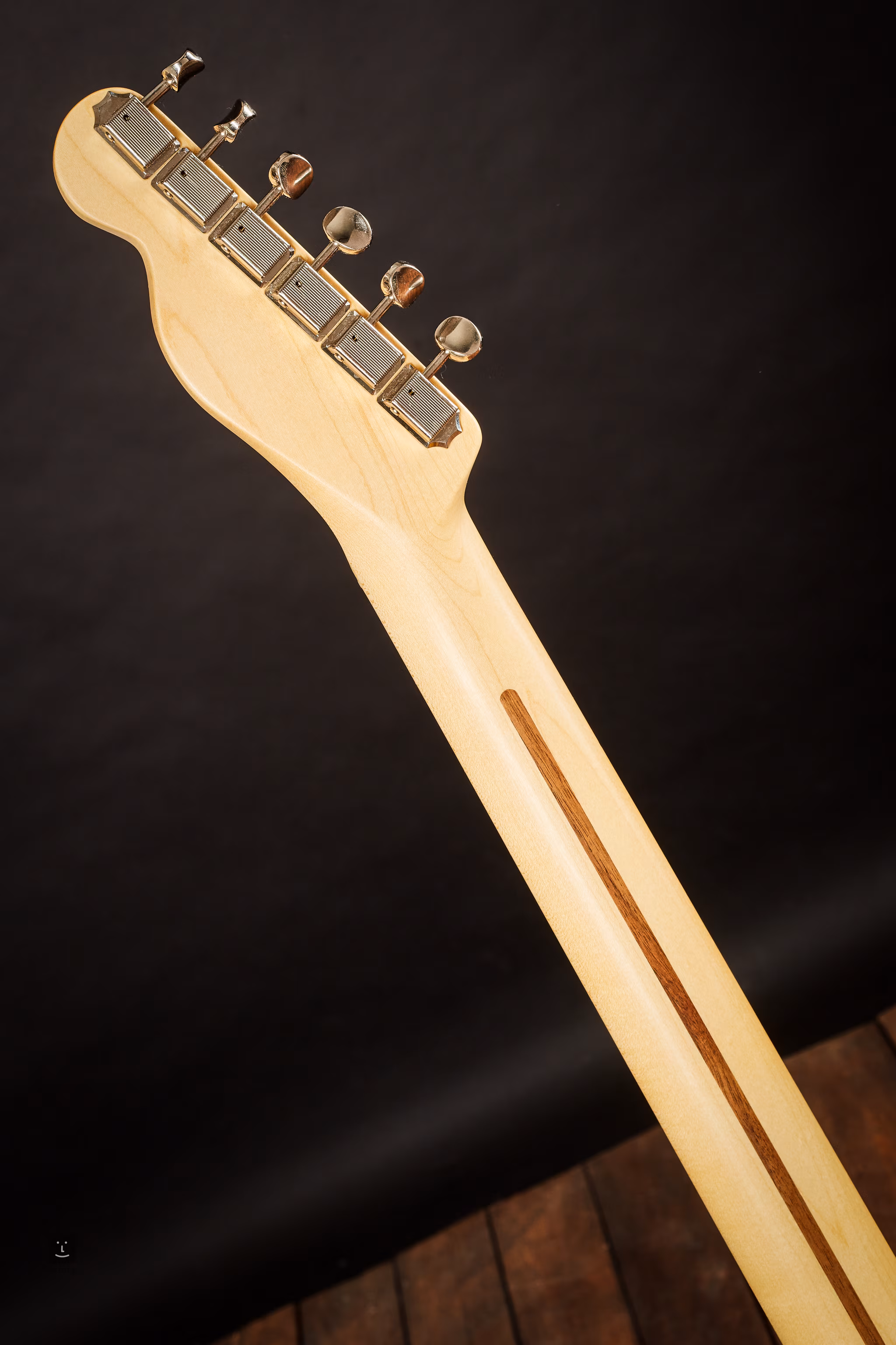 Jasanové tělo v barevné úpravě Butterscotch Blonde, strohý minmalistický design a kousavé snímače TV Jones Classic tvoří tento téměř ikonický kousek.