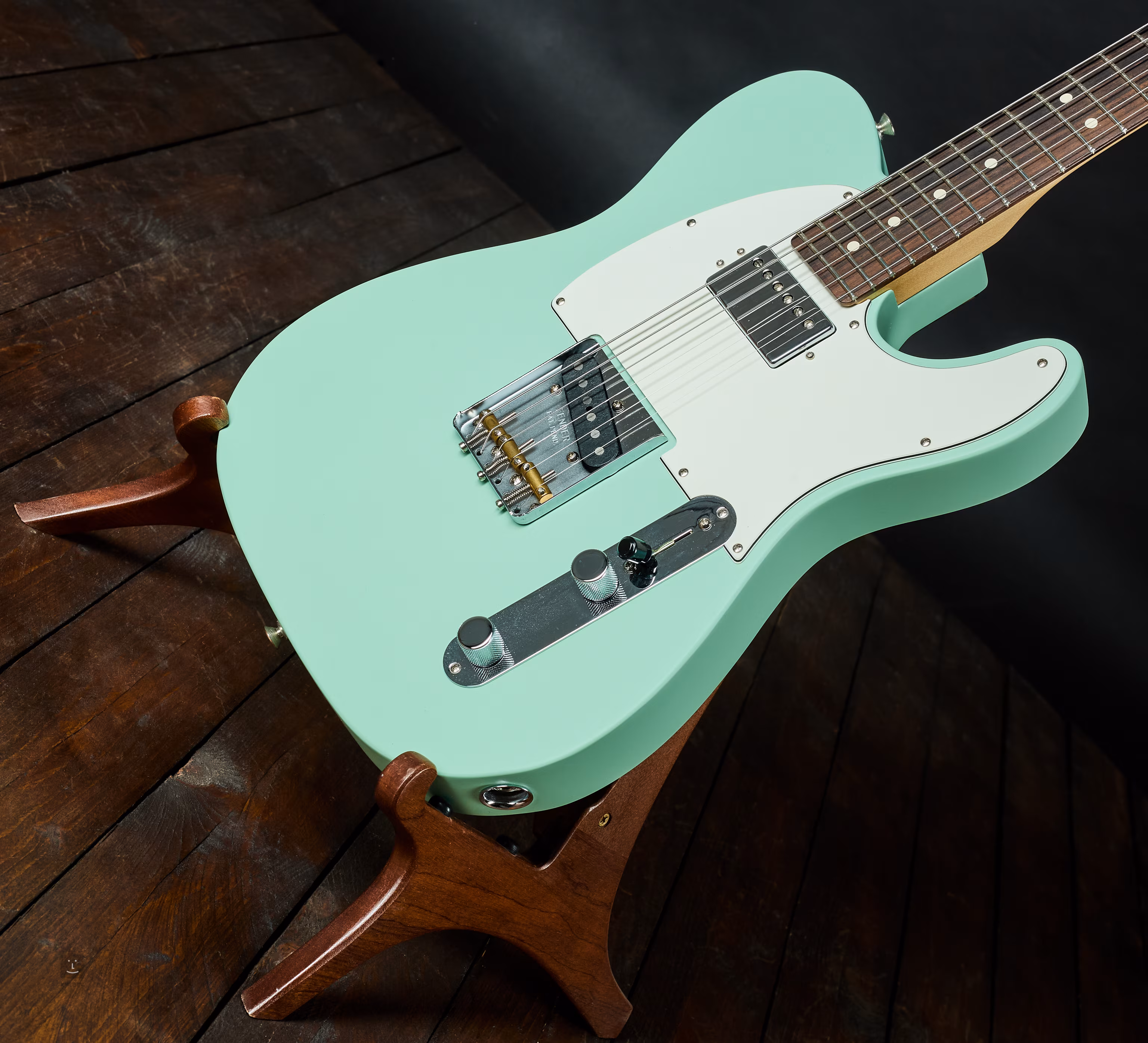 Olšové tělo elektrické kytary American Performer Telecaster HUM zdobí lak Satin Surf Green. Palisandrový hmatník je osazený dvaadvaceti pražci velikosti Jumbo a pozičními tečkami. Profil krku typu „Modern C“, rádius hmatníku 9.5” a pražce typu Jumbo zaručují herní komfort při používání libovolných kytarových technik. Kombinace kobylkového single-coilu Yosemite s Alnico IV magnety a krkového humbuckeru American Performer Double Tap poskytuje kytaře dynamický expresivní zvuk, který oceníte v široké škále hudebních žánrů. Push/Pull potenciometrem tónové rozepnete cívky humbuckeru a změníte plný zvuk humbuckeru na single-coil, navíc bez ztráty hlasitosti v single-coil modu. Moderní obvod Greasebucket umožňuje ubírat výšky bez zvýrazňování basových frekvencí.