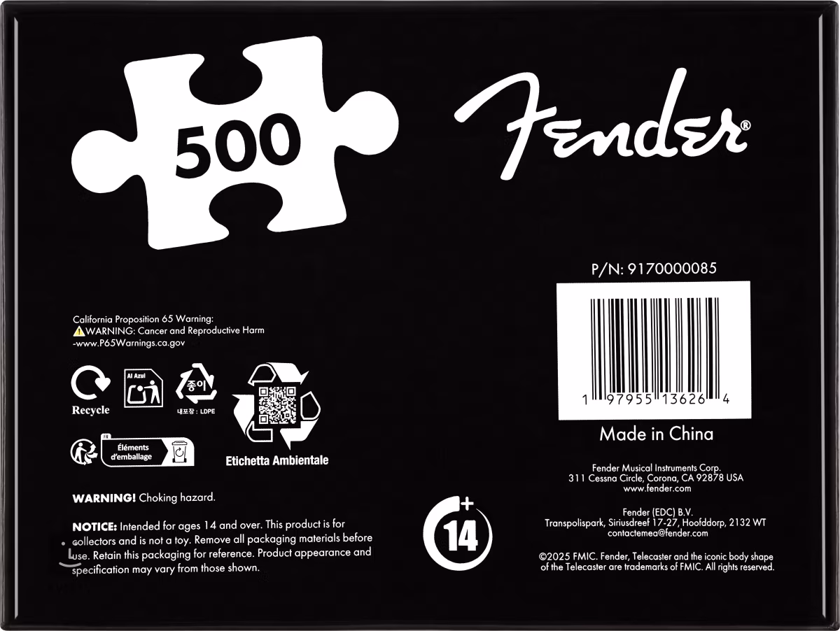 Oslavte 75 let elektrické kytary Fender Telecaster s puzzle 75th Anniversary Telecaster Puzzle. Dopřejte si relax a složte kousek po kousku legendární kytaru Telecaster v barevném provedení Butterscotch Blonde. Toto puzzle s 500 dílky je skvělým dárkem jak pro kytaristy, tak i milovníky puzzle.