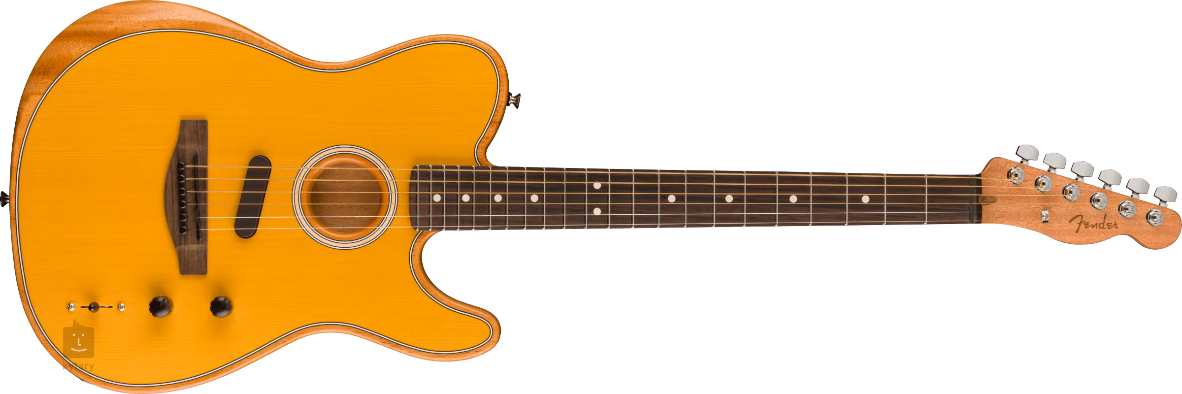 Zvuk je snímán pomocí dvou snímačů. Magnetický single-coil vám poskytne autentický tón elektrických kytar Fender, svět elektroakustických kytar zastupuje podkobylkový piezo snímač. Pomocí ovladačů nastavíte hlasitost, poměr magnetického a podkobylkového snímání a třípolohovým přepínačem můžete přepínat mezi simulacemi akustických a elektrických kytar (kytara nabízí šest různých zvuků).