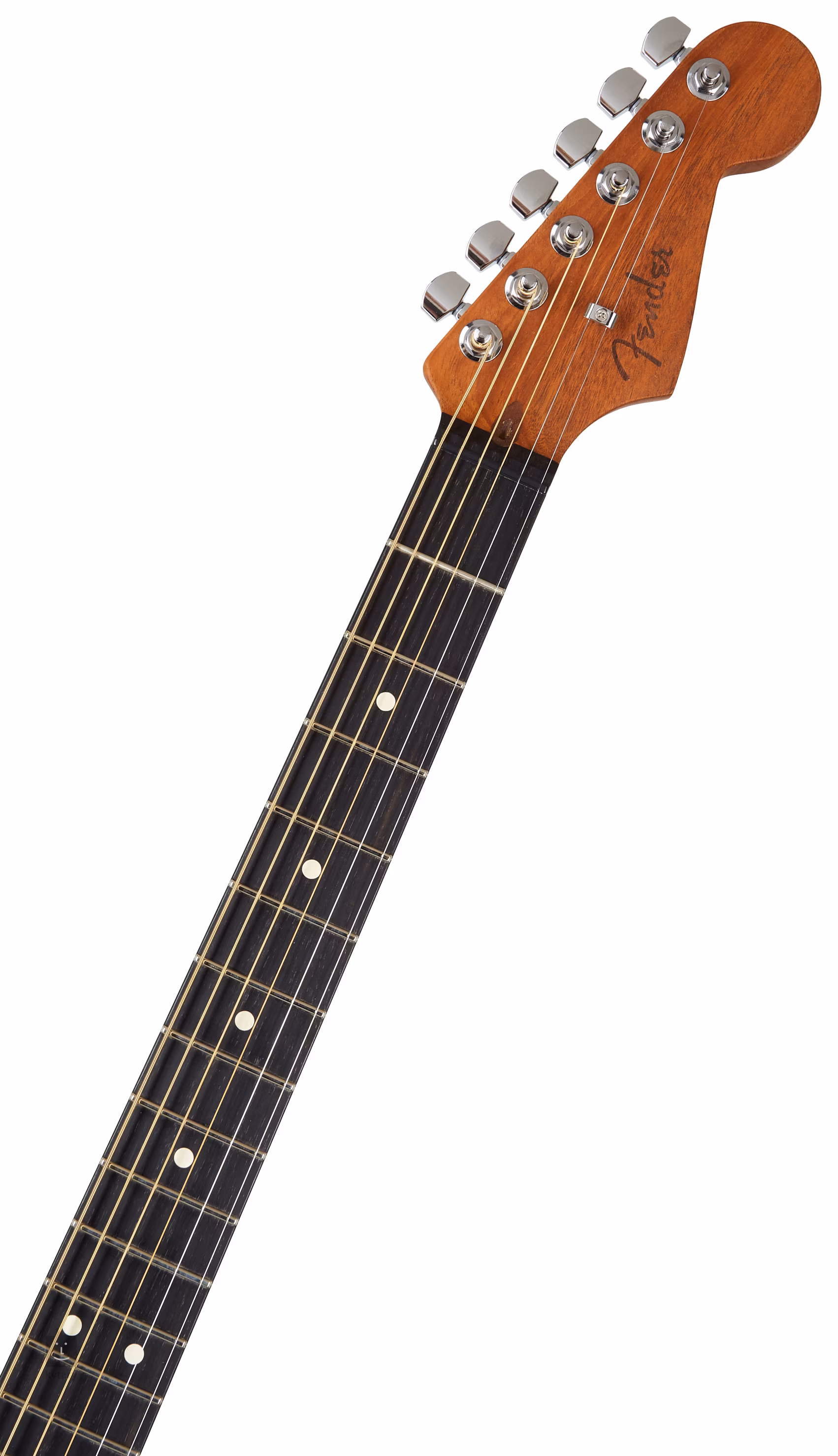 Elektroakustická kytara Fender American Acoustasonic Stratocaster spojuje světy elektrických a akustických nástrojů a dokazuje, že se značka Fender nemusí pouze obracet do slavné minulosti. Kytara je vyráběna v kalifornské Coroně (USA), čemu odpovídá i její špičkové zpracování.