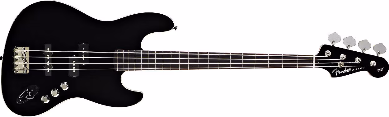 Opravdu výjimečný a vskutku unikátní je Aerodyne Jazz Bass od firmy Fender. Ne nadarmo patří tento nástroj do speciální edice. Klasický styl je doplněn o nadčasový design, jehož výsledkem je tenké ergonimicky klenuté tělo, jež je zhotoveno z americké masivní lípy. Kytara je celá v černém provedení s luxusním krémovým lemováním a stříbrným logem! Opravdu unikát mezi unikáty.