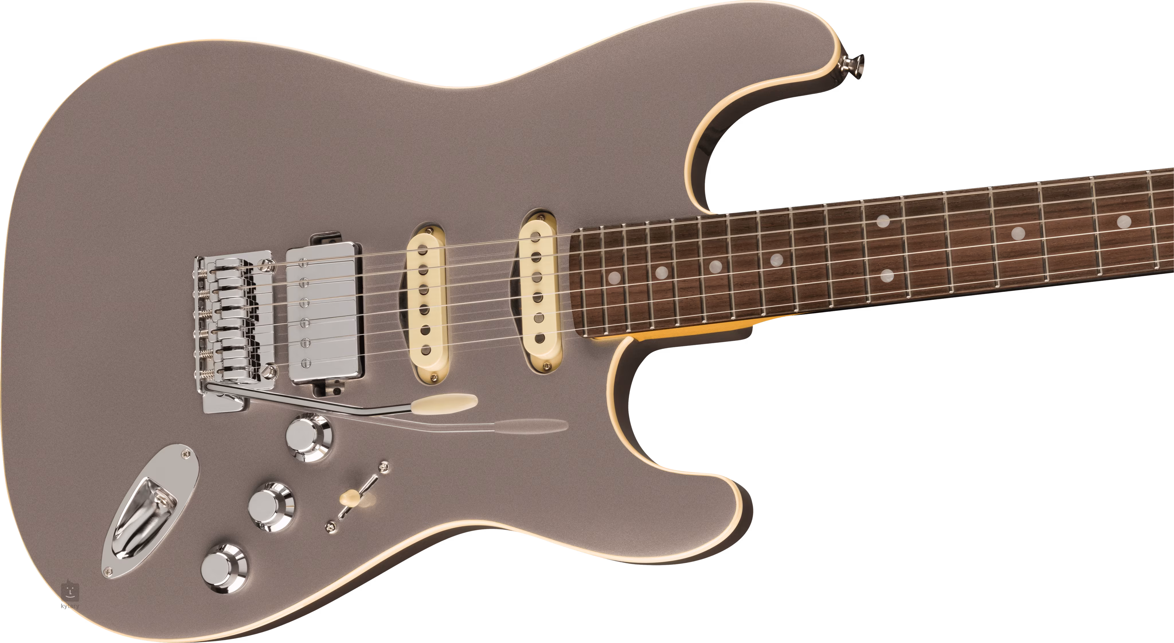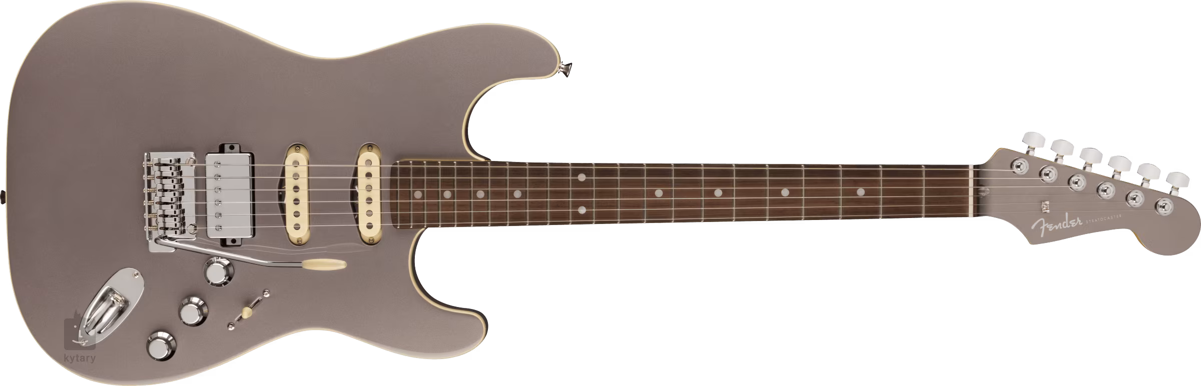 Lipové tělo elektrické kytary Aerodyne Special Stratocaster HSS Dolphin Gray Metallic kryje lesklý polyesterový lak. “Modern C” profil javorového krku a dvanáctipalcový rádius zaručují snadný a komfortní pohyb po celé ploše hmatníku. Samotný palisandrový hmatník je osazen dvaadvaceti pražci velikosti Medium Jumbo a pozičními tečkami z imitace perleti.