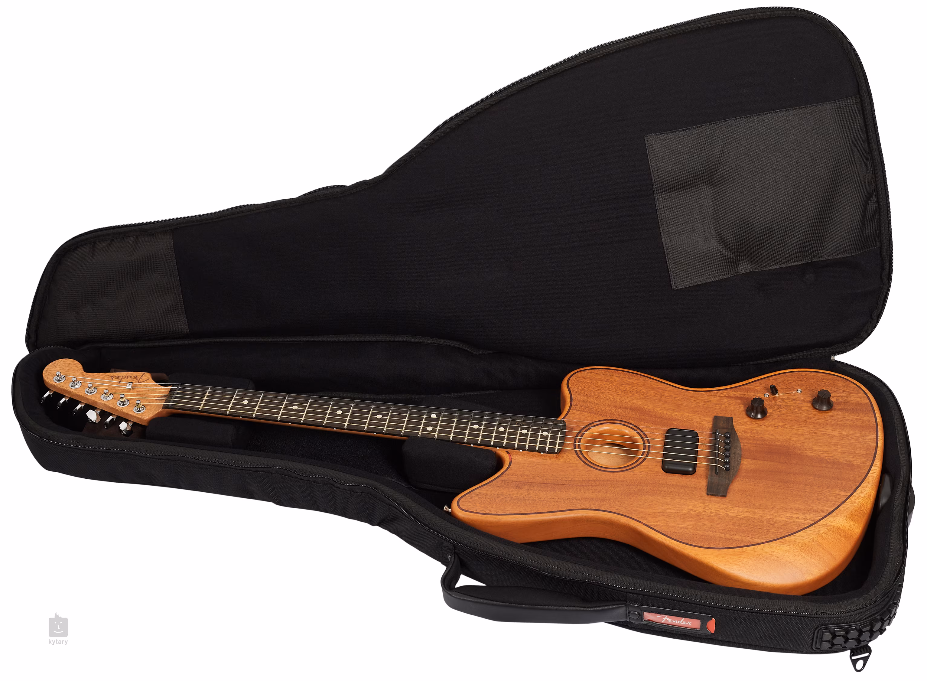 Elektroakustická kytara Fender American Acoustasonic Jazzmaster All-Mahogany Natural spojuje světy elektrických a akustických nástrojů a dokazuje, že se značka Fender nemusí pouze obracet do slavné minulosti. Kytara je vyráběna v kalifornské Coroně (USA), čemu odpovídá i její špičkové zpracování.