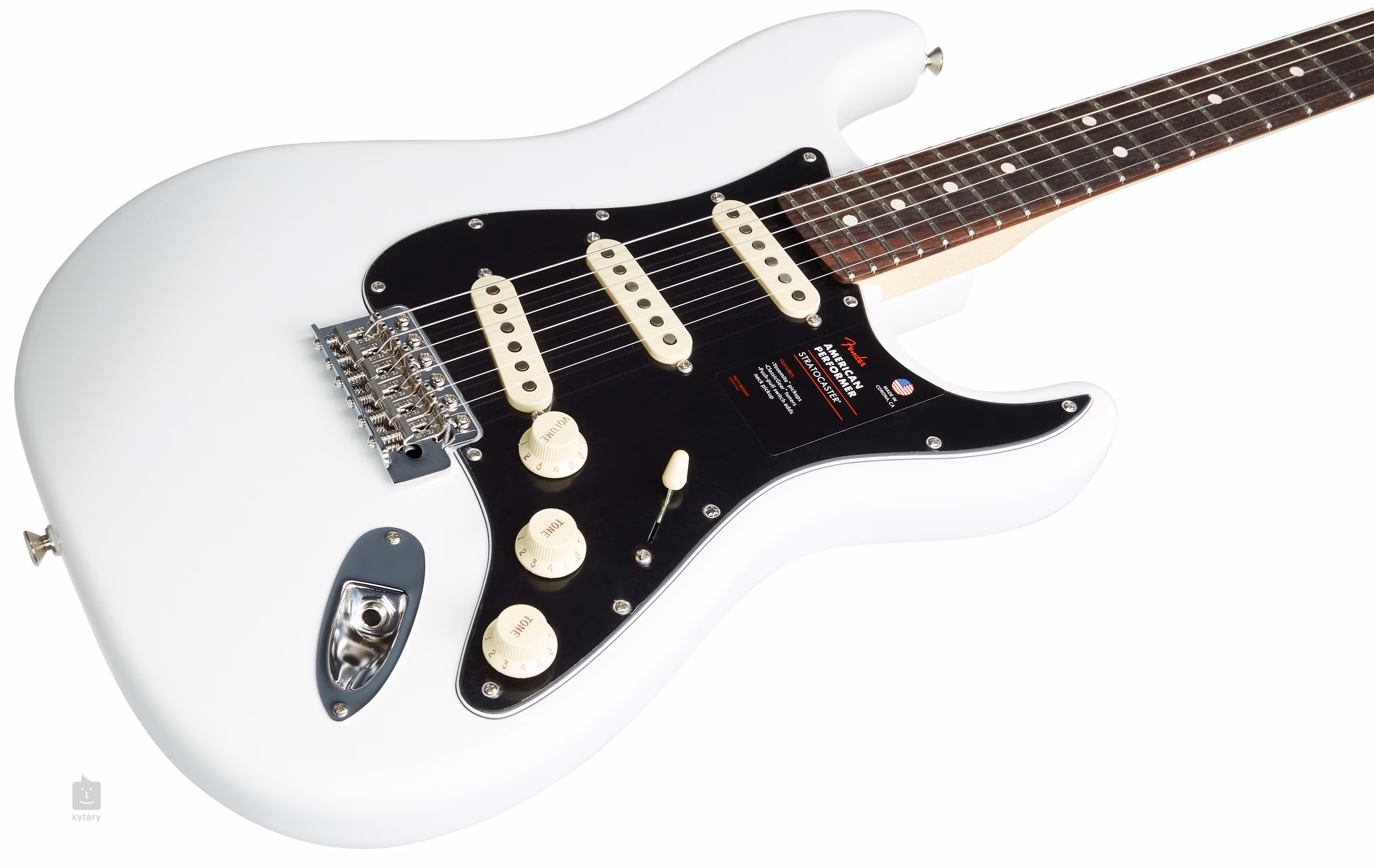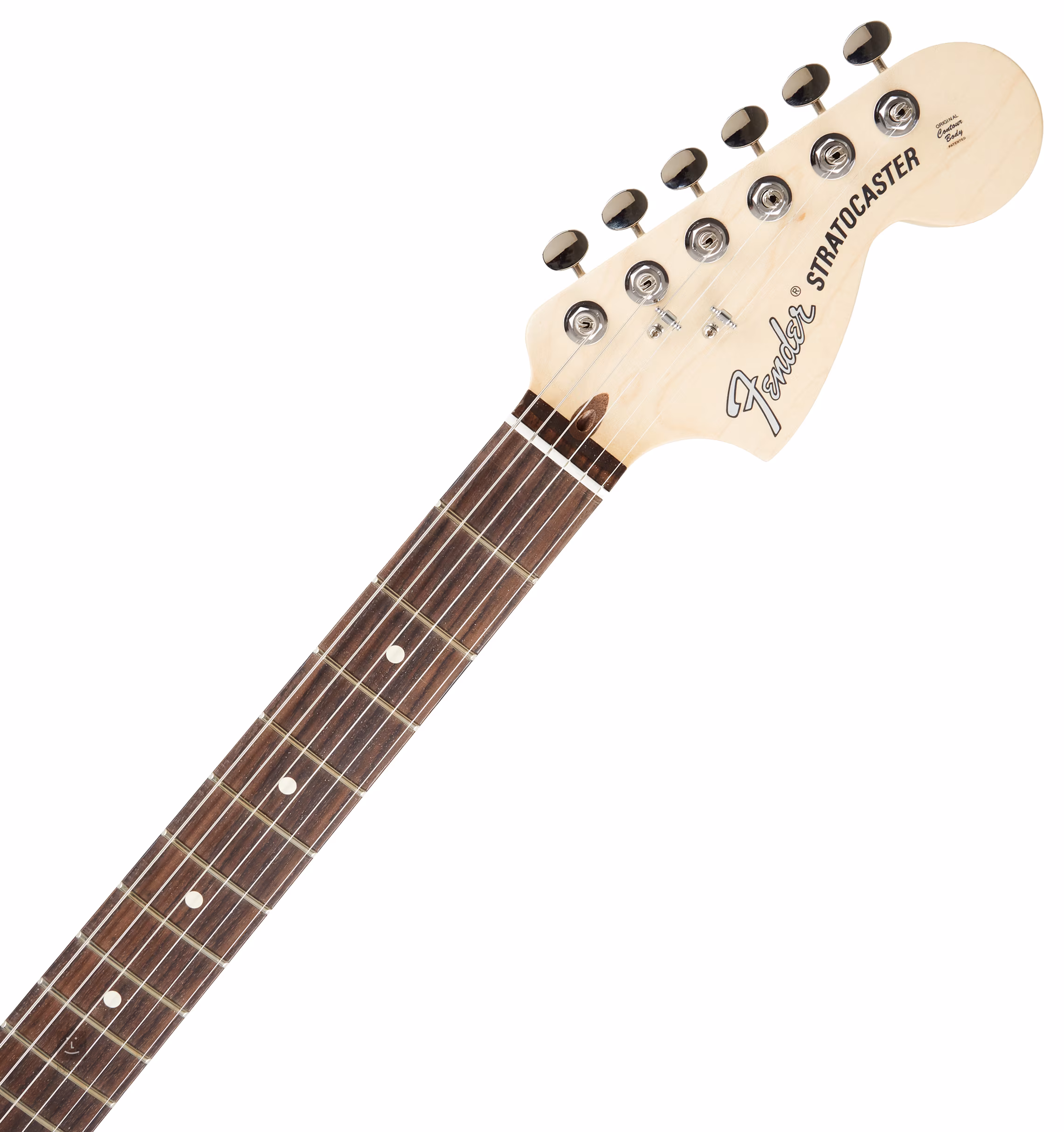 Olšové tělo kytary American Performer Stratocaster RW AWT kryje lesklý polyuretanový lak. K přišroubovanému javorovému krku je přilepen palisandrový hmatník osazený dvaadvaceti pražci velikosti Jumbo a pozičními tečkami. Profil krku typu „Modern C“, rádius hmatníku a pražce typu Jumbo zaručují kytaristům hráčský komfort při používání libovolných kytarových technik.