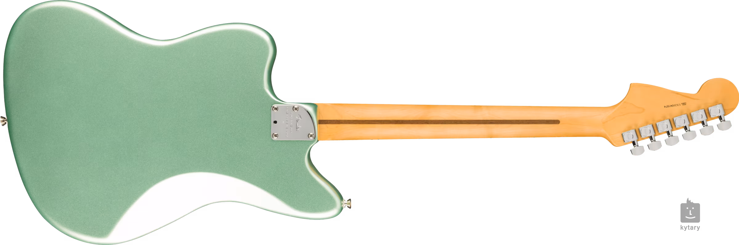 Olšové tělo elektrické kytary American Professional II Jazzmaster MN MYST SFG kryje lesklý polyuretanový lak. Javorový krk s profilem „Deep C“ (na pomezí Modern C a U) vám perfektně padne do ruky – ať už budete hrát rychlá sóla nebo akordy. Plochu javorového hmatníku rozděluje dvaadvacet pražců velikosti Narrow Tall a černé poziční tečky. Zaoblené hrany hmatníku a nově tvarovaná patka krku zaručují snadný a pohodlný dohmat po celé ploše hmatníku.