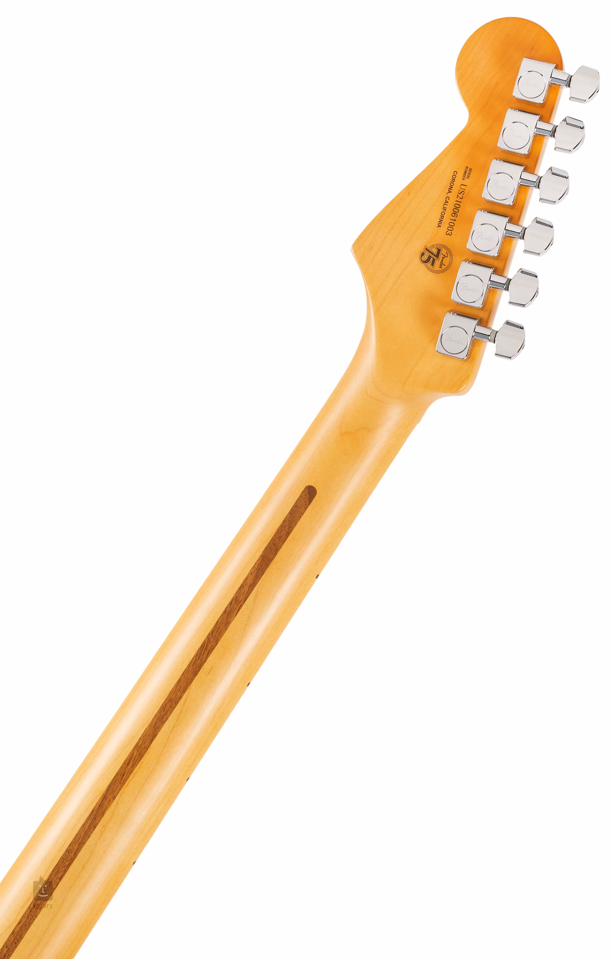Olšové tělo kytary American Professional II Stratocaster MN 3TSB kryje lesklý polyuretanový lak. Javorový krk s profilem „Deep C“ (na pomezí Modern C a U) vám perfektně padne do ruky – ať už budete hrát rychlá sóla nebo akordy. Plochu javorového hmatníku rozděluje dvaadvacet pražců velikosti Narrow Tall a černé poziční tečky. Zaoblené hrany hmatníku a nově tvarovaná patka krku zaručují snadný a pohodlný dohmat po celé ploše hmatníku.