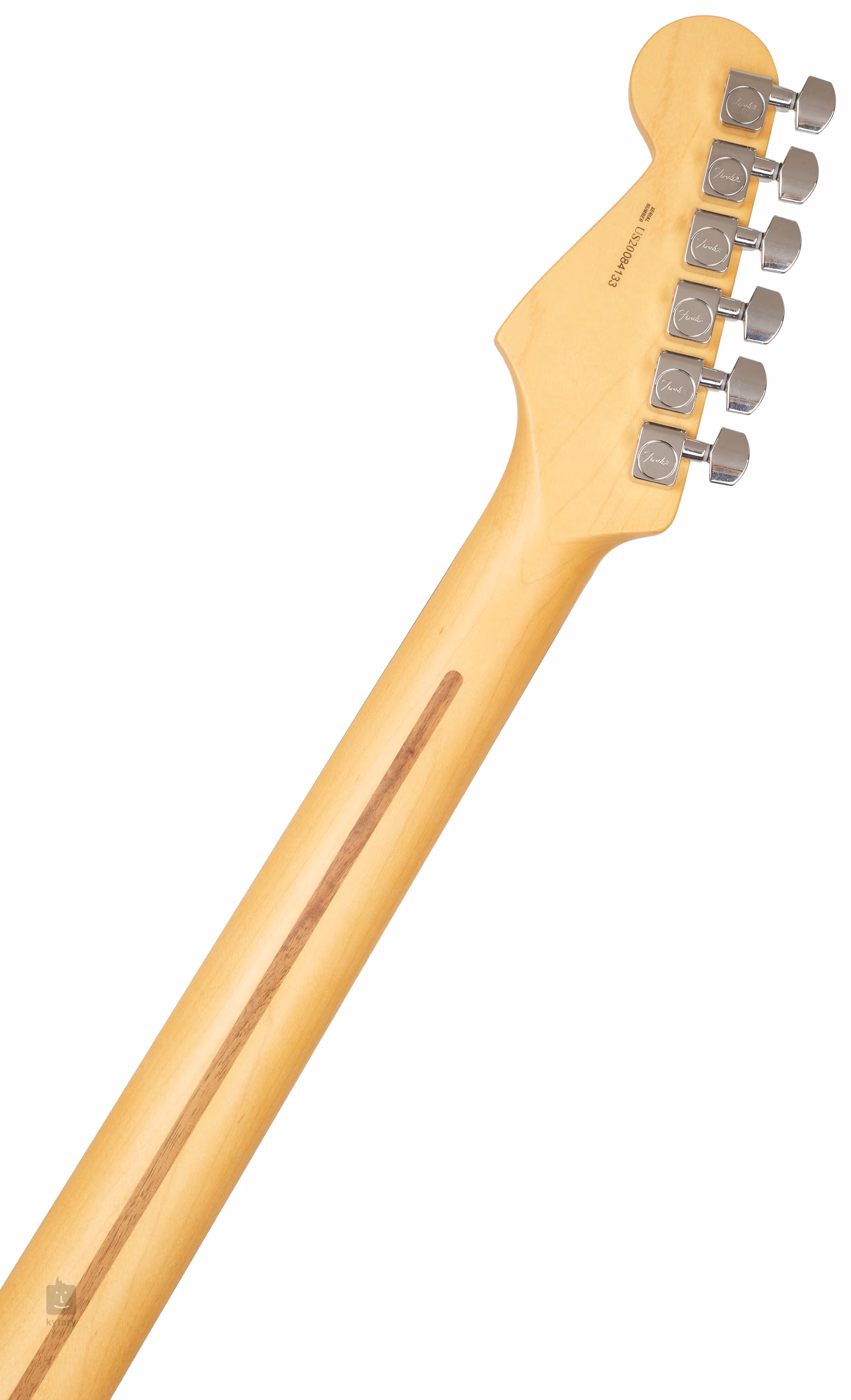 Olšové tělo tohoto Stratocasteru kryje lesklý polyuretanový lak. Javorový krk s profilem „Deep C“ (na pomezí Modern C a U) vám perfektně padne do ruky – ať už budete hrát rychlá sóla nebo akordy. Plochu palisandrového hmatníku rozděluje dvaadvacet pražců velikosti Narrow Tall a bílé poziční tečky. Zaoblené hrany hmatníku a nově tvarovaná patka krku zaručují snadný a pohodlný dohmat po celé ploše hmatníku.