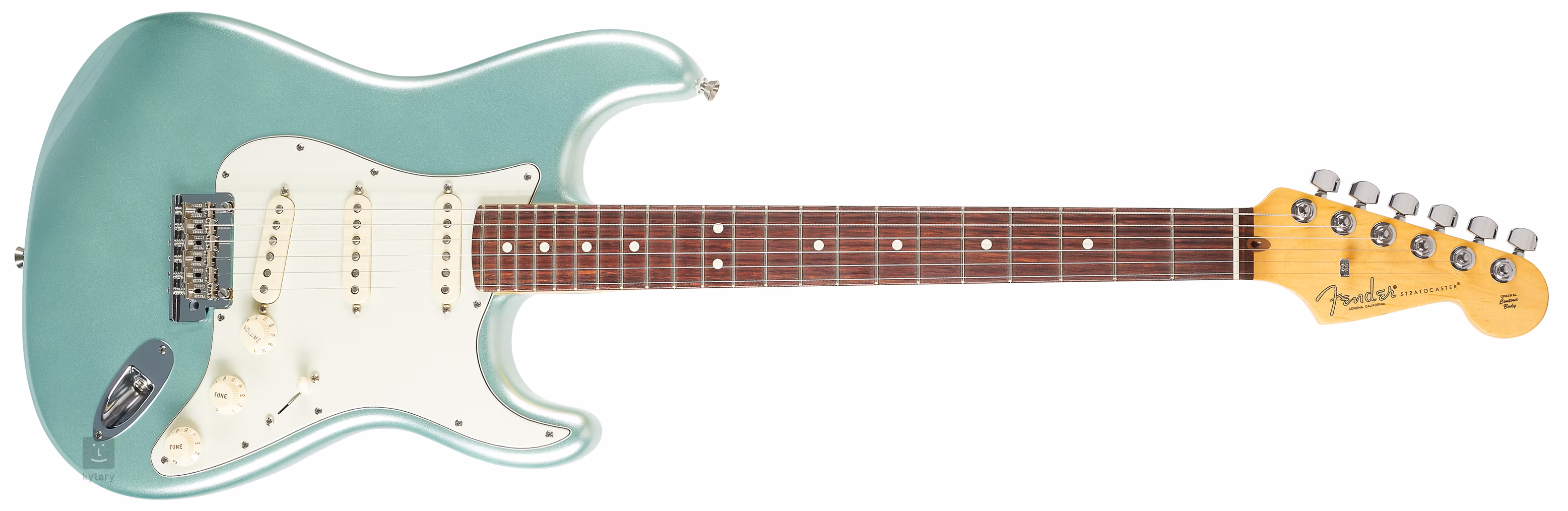Olšové tělo kytary American Professional II Stratocaster RW MYST SFG kryje lesklý polyuretanový lak. Javorový krk s profilem „Deep C“ (na pomezí Modern C a U) vám perfektně padne do ruky – ať už budete hrát rychlá sóla nebo akordy. Plochu palisandrového hmatníku rozděluje dvaadvacet pražců velikosti Narrow Tall a bílé poziční tečky. Zaoblené hrany hmatníku a nově tvarovaná patka krku zaručují snadný a pohodlný dohmat po celé ploše hmatníku.