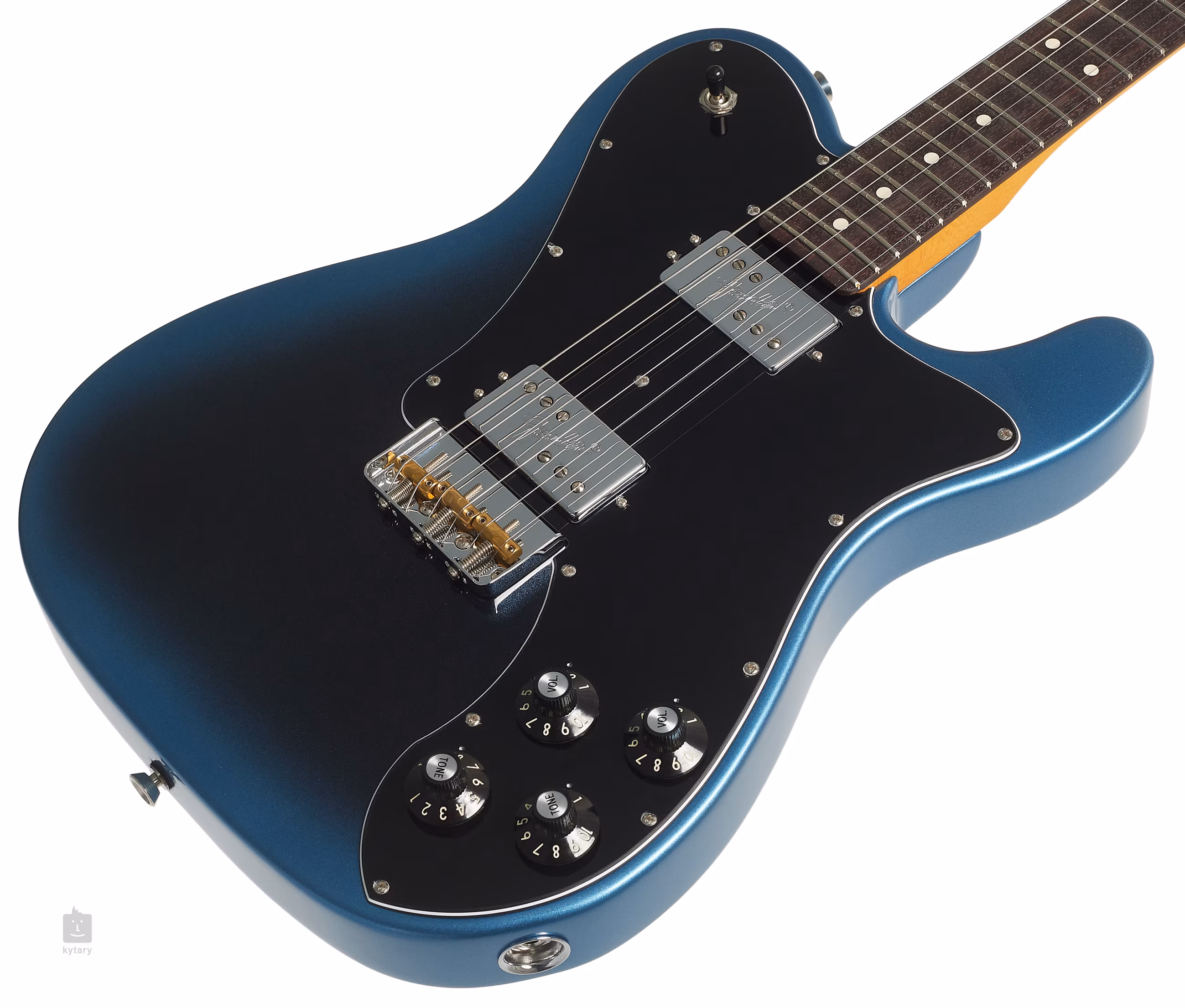 Olšové tělo elektrické kytary American Professional II Telecaster DLX RW DK NIGHT kryje lesklý polyuretanový lak. Javorový krk s profilem „Deep C“ (na pomezí Modern C a U) vám perfektně padne do ruky – ať už budete hrát rychlá sóla nebo akordy. Plochu palisandrového hmatníku rozděluje dvaadvacet pražců velikosti Narrow Tall a bílé poziční tečky. Zaoblené hrany hmatníku a nově tvarovaná patka krku zaručují snadný a pohodlný dohmat na celé ploše hmatníku.