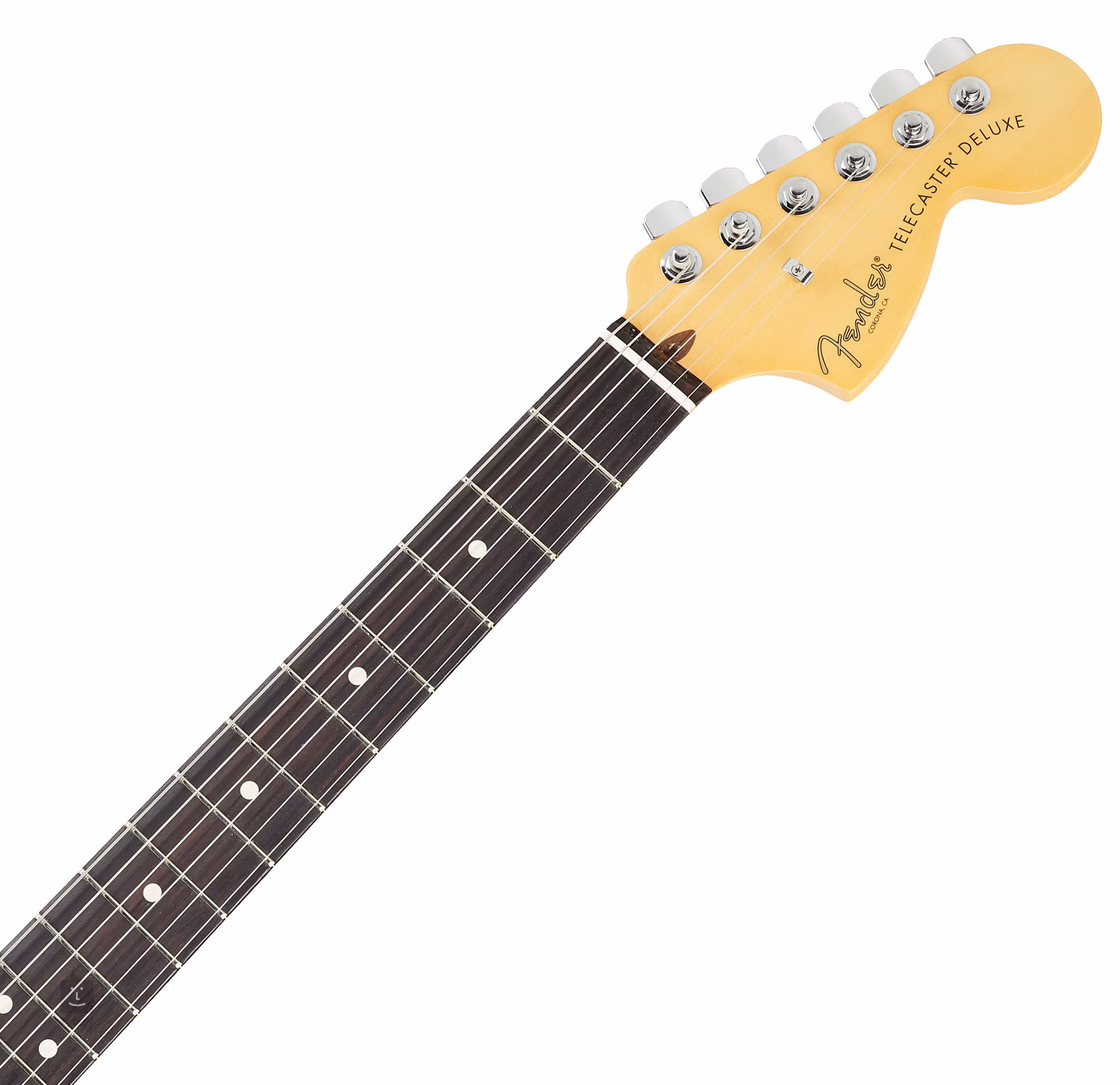 Olšové tělo elektrické kytary American Professional II Telecaster DLX RW MERC kryje lesklý polyuretanový lak. Javorový krk s profilem „Deep C“ (na pomezí Modern C a U) vám perfektně padne do ruky – ať už budete hrát rychlá sóla nebo akordy. Plochu palisandrového hmatníku rozděluje dvaadvacet pražců velikosti Narrow Tall a bílé poziční tečky. Zaoblené hrany hmatníku a nově tvarovaná patka krku zaručují snadný a pohodlný dohmat na celé ploše hmatníku.