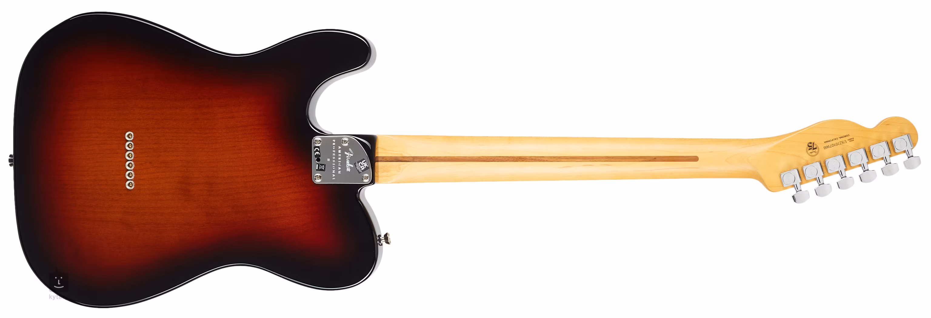 Olšové tělo elektrické kytary American Professional II Telecaster MN 3TS kryje lesklý polyuretanový lak. Javorový krk s profilem „Deep C“ (na pomezí Modern C a U) vám perfektně padne do ruky – ať už budete hrát rychlá sóla nebo akordy. Plochu javorového hmatníku rozděluje dvaadvacet pražců velikosti Narrow Tall a černé poziční tečky. Zaoblené hrany hmatníku a nově tvarovaná patka krku zaručují snadný a pohodlný dohmat na celé ploše hmatníku.