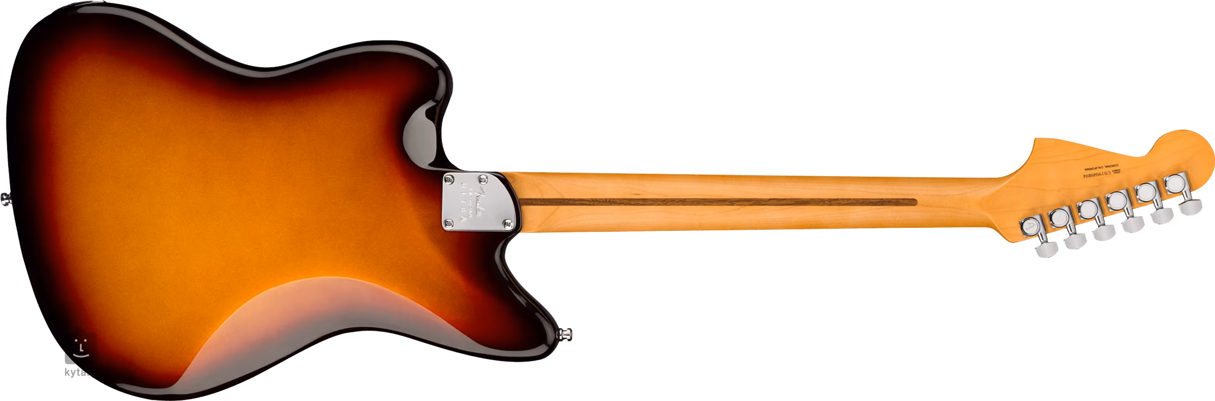 Struny jsou přes nultý pražec z kosti ukotveny v uzavřených uzamykatelných mechanikách (Deluxe Cast/Sealed Locking), v kobylce se šesti sedly z chromované mosazi a pro modely Jazzmaster a Jaguar typickém floating vibratu. Stylový vzhled kytary podtrhuje firemní logo na hlavici nástroje a čtyřvrstvý pickguard z imitace želvoviny, který zároveň chrání lak před poškrábáním.