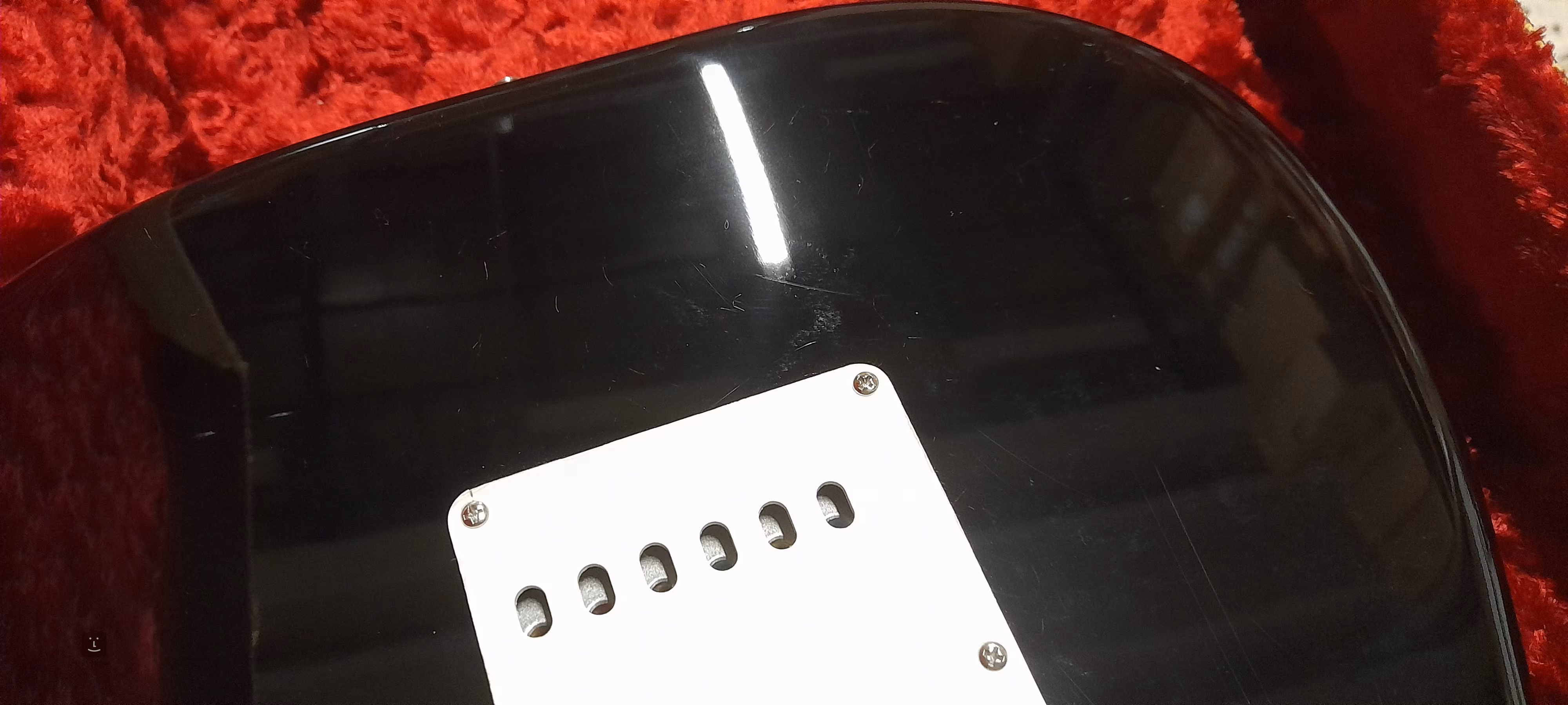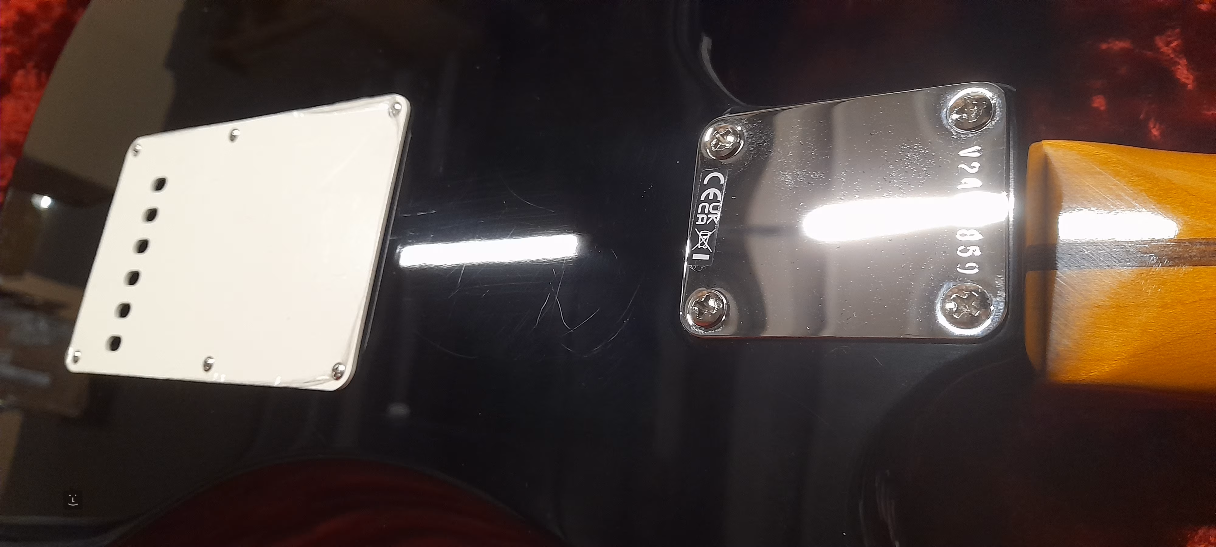 Kytara je dodávána v kufru spolu s chromovaným krytem na kobylku.