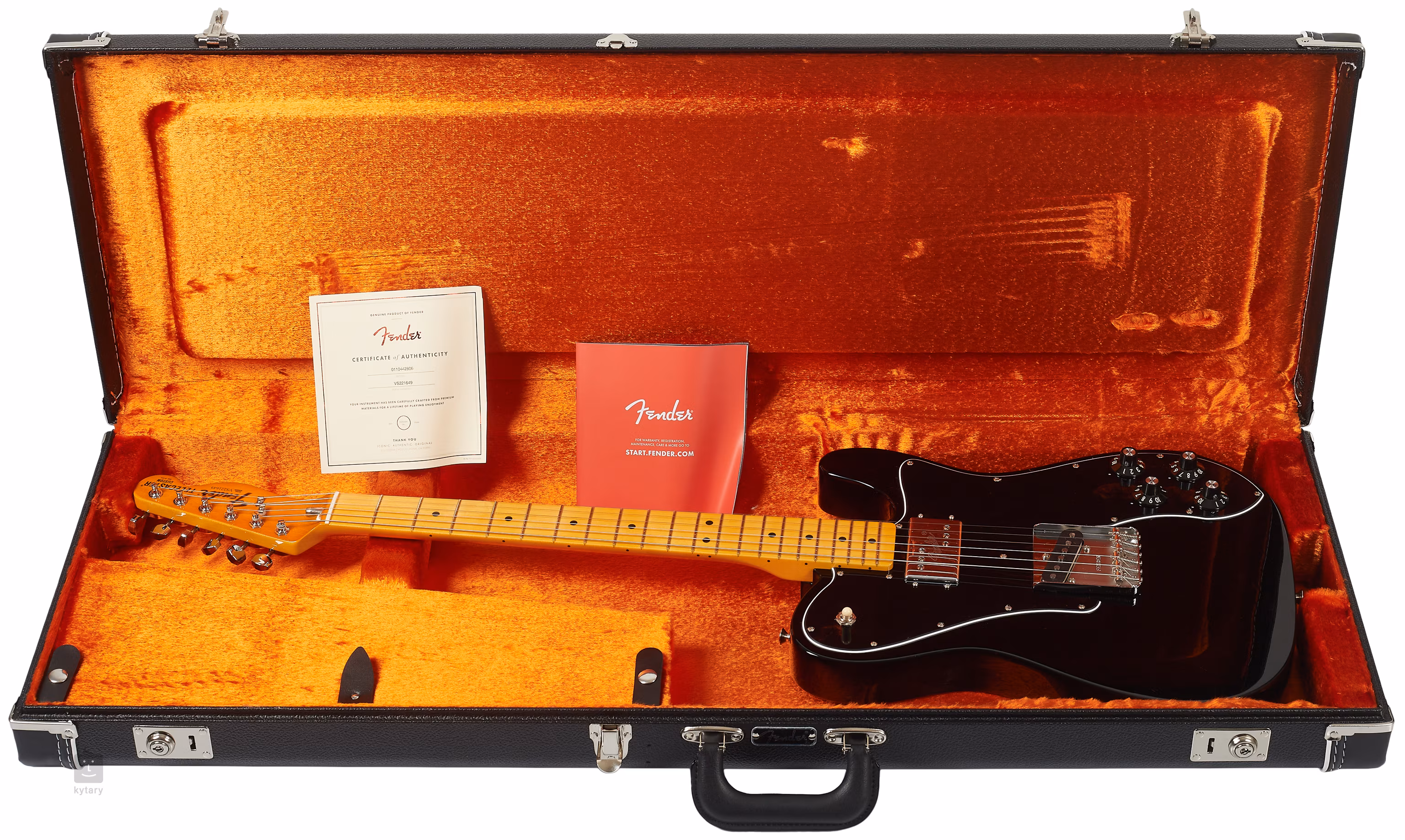 Elektrická kytara American Vintage II 1977 Telecaster Custom Black přesně reprodukuje tón a feel originálů Telecaster Custom. Olšové tělo kytary kryje lesklý polyuretanový lak. Krk s ‘77 “C” profilem a hmatník osazený jednadvaceti pražci velikosti Vintage Tall jsou vyrobeny z javoru.