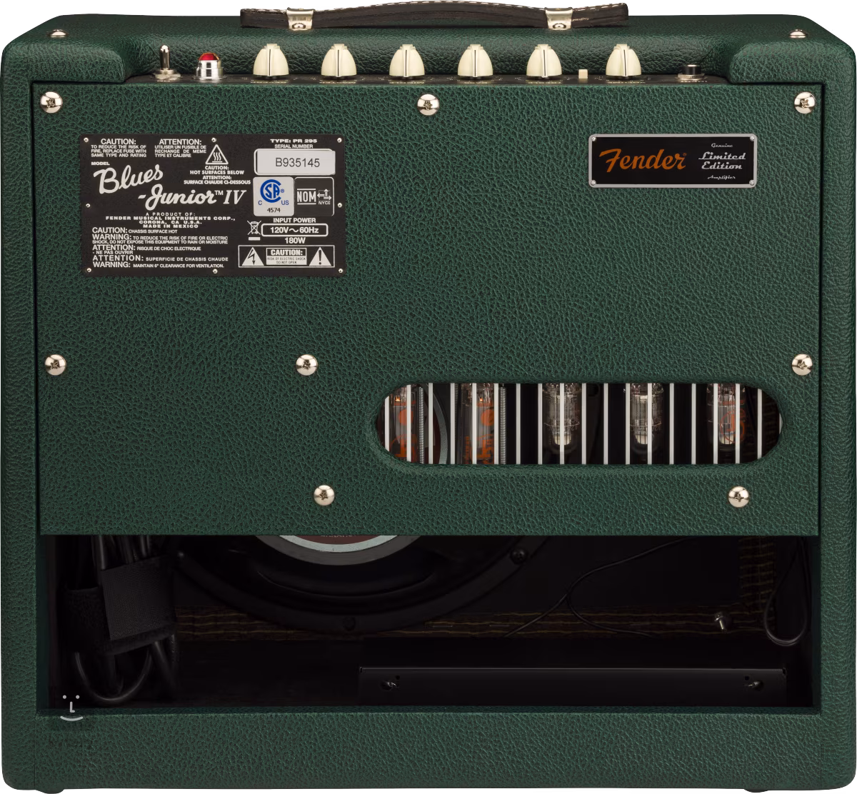 Fender Blues Junior IV British Racing Green je limitovaná edice kompaktního jednokanálového lampového komba z řady Fender Hot Rod se stylovým designem v podobě potahu v provedení British Racing Green, čelní průzvučné mřížky ve stylu aparátů Fender Bassman a koženého držadla. Srdcem komba je dvanáctipalcový reproduktor Celestion, který poskytuje aparátu vyvážený zvuk napříč frekvenčním spektrem s typickým vřelým charakterem lampových aparátů Fender, tj. vše od křišťálově čistých tónů po rockovější crunch.