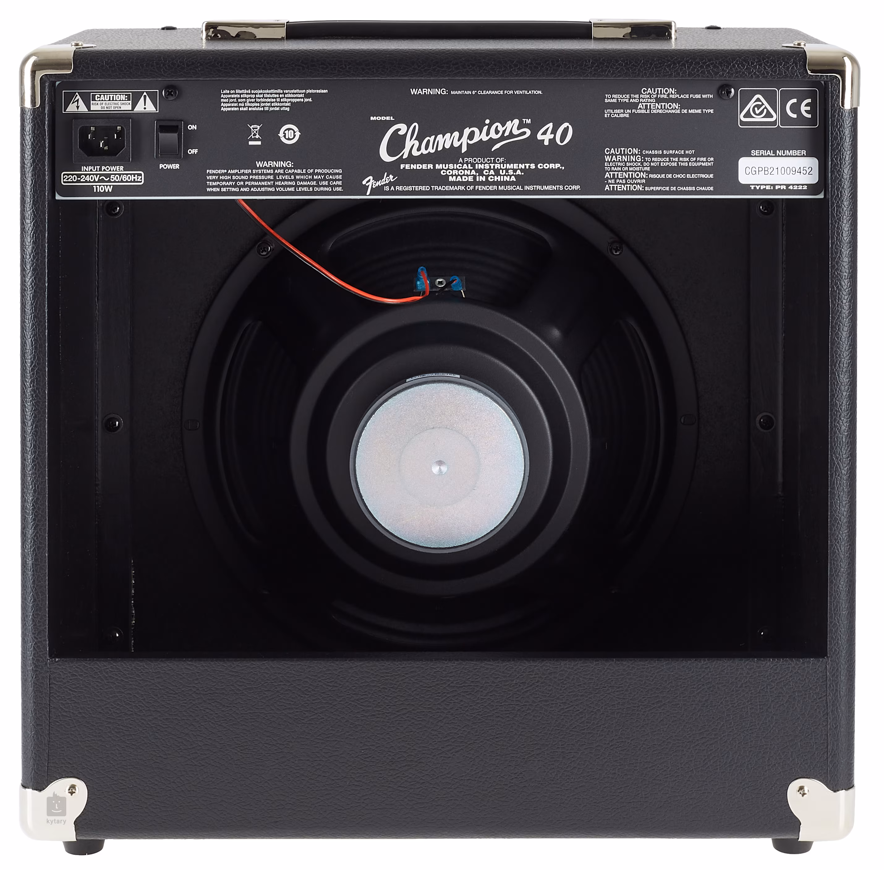 FENDER CHAMPION 40Fender Champion je řada tranzistorových kytarových komb, která nabízí kvalitu tradičně spojenou se značkou Fender a širokou paletu zvuků a efektů. Díky tomu jde o velmi všestranné aparáty, které se prosadí kdekoli od jazzu až po metal.Champion 40 je pak 40Wattové kombo osazené 12palcovým reproduktorem Special Design. Umožňuje pracovat s dvěma kanály, první kanál vychází z čistého zvuku Blackface Fenderů, zvuk druhého kanálu závisí na zvoleném Amp Voice nastavení. Jde o model vhodný pro domácí hraní a cvičení i hraní ve zkušebně a na malých podiích.Ovládací prvky jsou umístěné na předním panelu. Za vstupem pro Vaši kytaru naleznete potenciometry Gain, dvoje Volume a Voice, které nastavují míru zkreslení, hlasitost a právě charakter zvuku u obou kanálů. Za nimi je společný 2pásmový ekvalizér tvořený ovladači Treble a Bass a nakonec ovladače volící efekty a jejich výraznost. Pracovat je možné s reverbem, delayem, chorusem, tremolem, vibratone a dalšími efekty.Výhodami je zabudování spínače tap tempo pro přesné nastavení efektů, sluchátkového výstupu pro tiché hraní a aux-in pro připojení externích zařízení typu CD nebo mp3 přehrávačů. Možné je připojit footswitch pro přepínání kanálů a aktivaci efektůFender Champion je kvalitní cenově dostupný aparát, který jistě potěší širokou škálu kytaristů. Díky své všestrannosti je ideální volbou nejen pro náročné začátečníky.