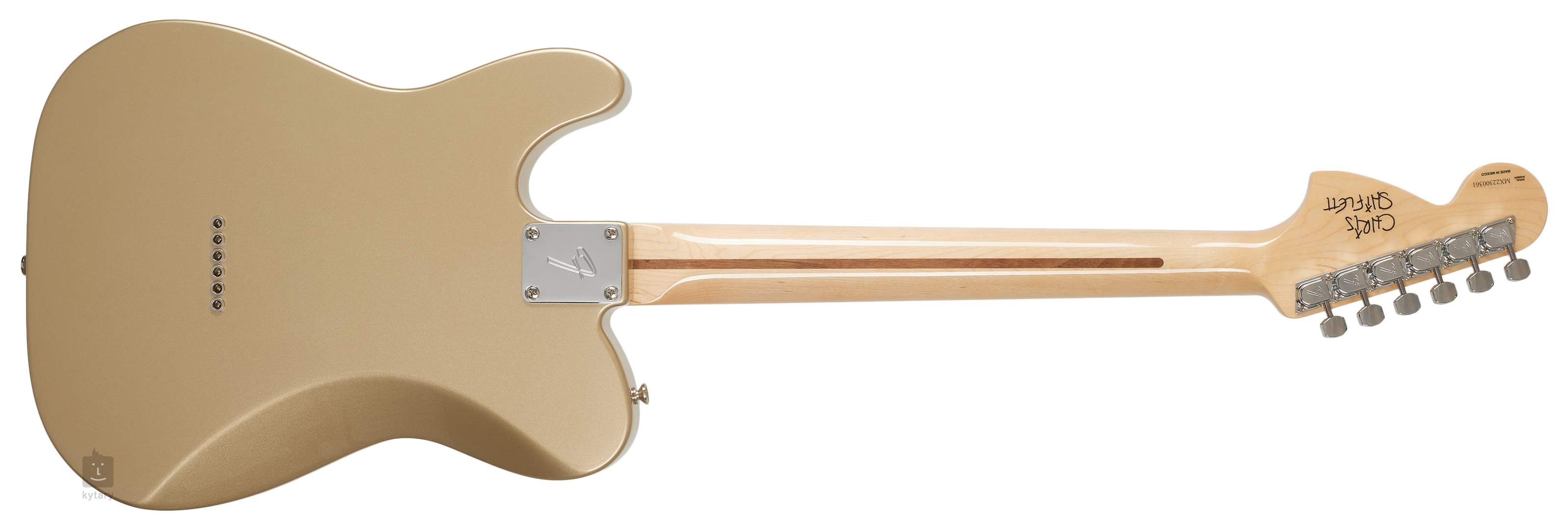 Olšové tělo kytary zdobí lesklý polyesterový lak a barevná úprava Shoreline Gold. K přišroubovanému krku zhotovenému z jednoho kusu javoru s příjemným C profilem, tj. do dnešních dní nejpoužívanějším tvarem krku univerzálně vhodným pro všechny hudební žánry, je přilepen palisandrový hmatník osazený jednadvaceti pražci velikosti Medium Jumbo. Orientaci na hmatníku usnadňují poziční tečky.