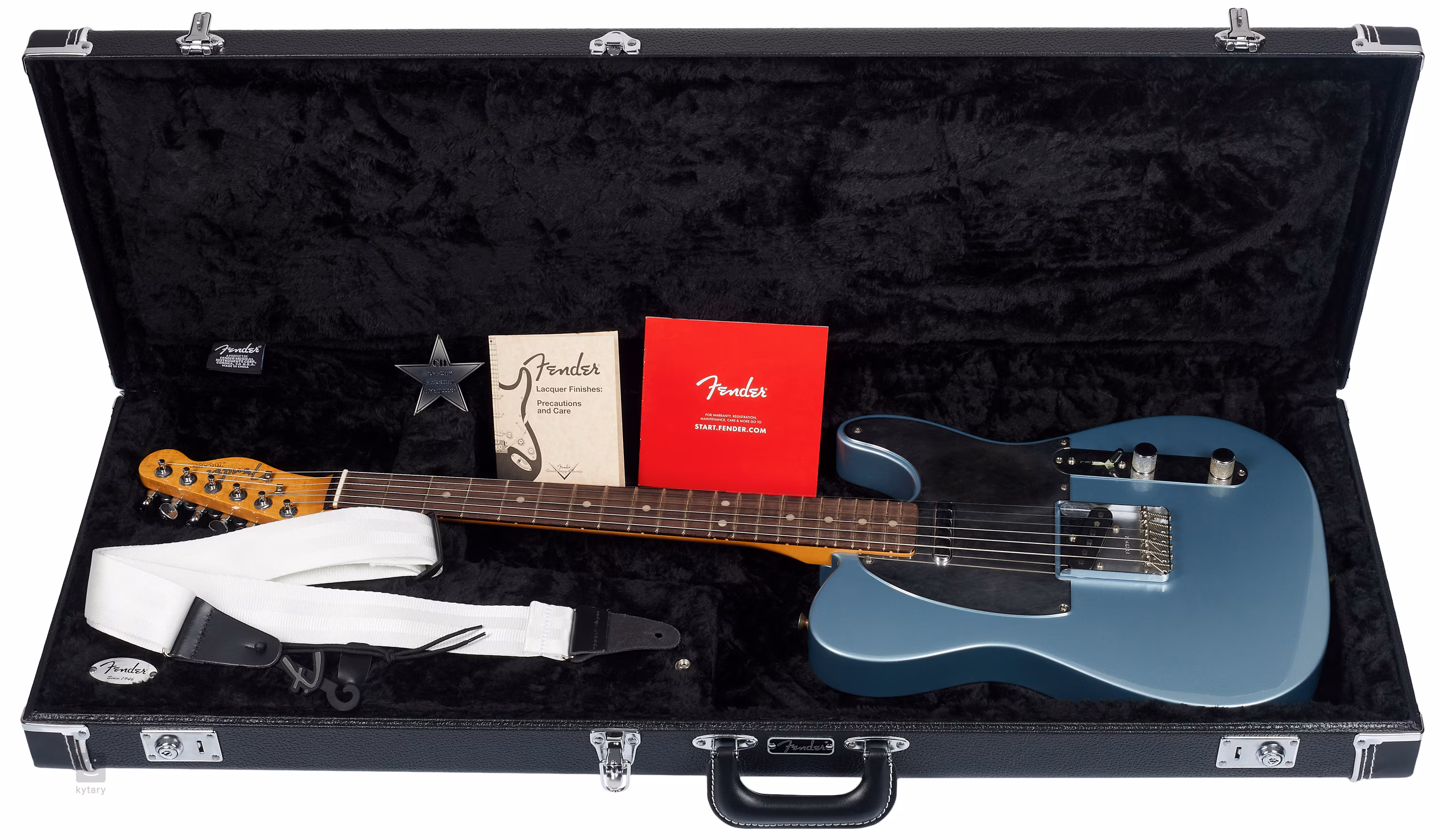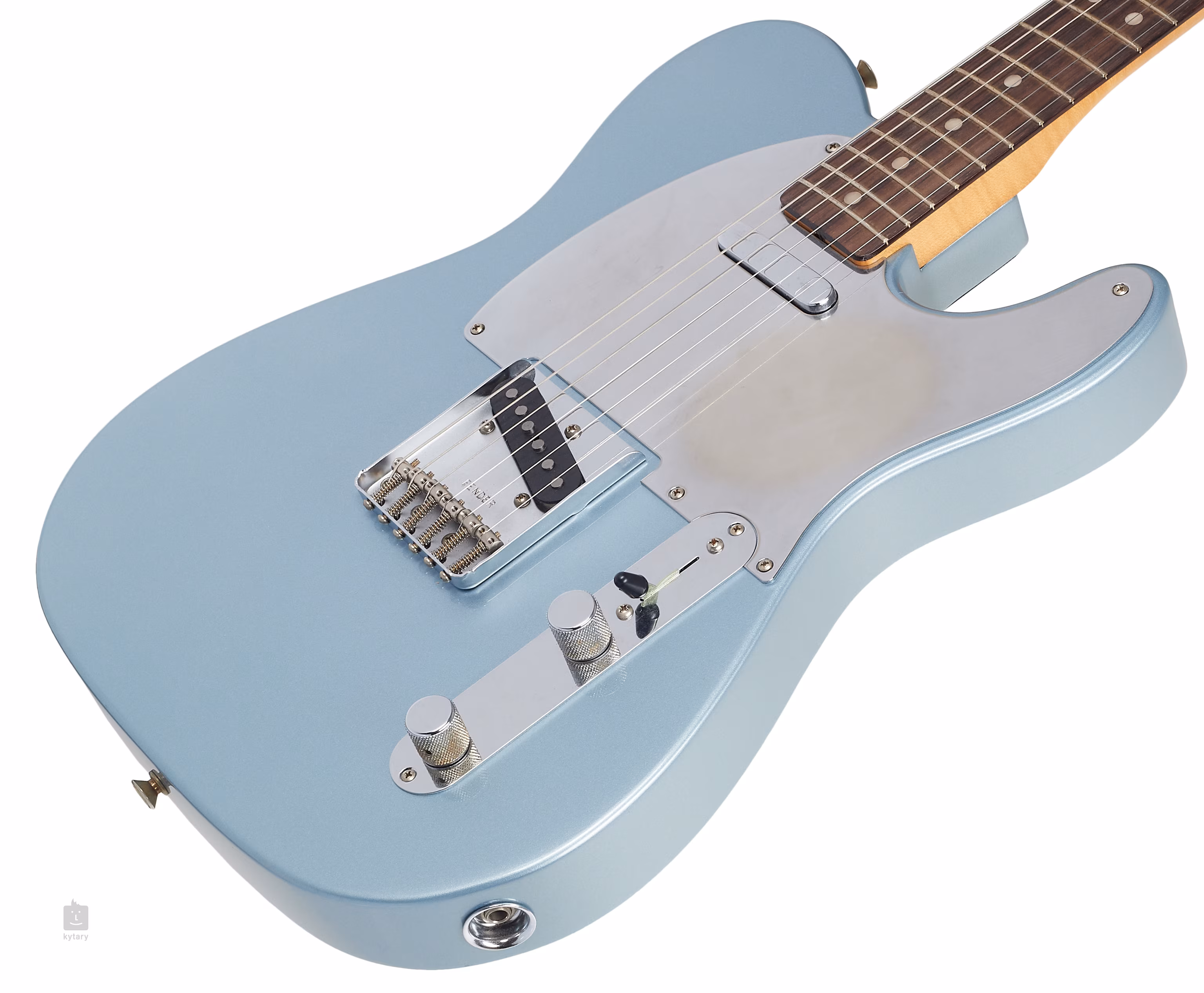 Olšové tělo Telecasteru zdobí barevná úprava Ice Blue Metallic a finiš Road Worn s výraznějšími prvky umělé patiny. Javorový krk s profilem „Mid 60s C“ a rádius 7.25 palců přesně odpovídají specifikacím originálu Tele 1965 Chrissie Hynde. Plochu palisandrového hmatníku rozděluje jednadvacet pražců velikosti Vintage Tall a poziční tečky z imitace perleti.