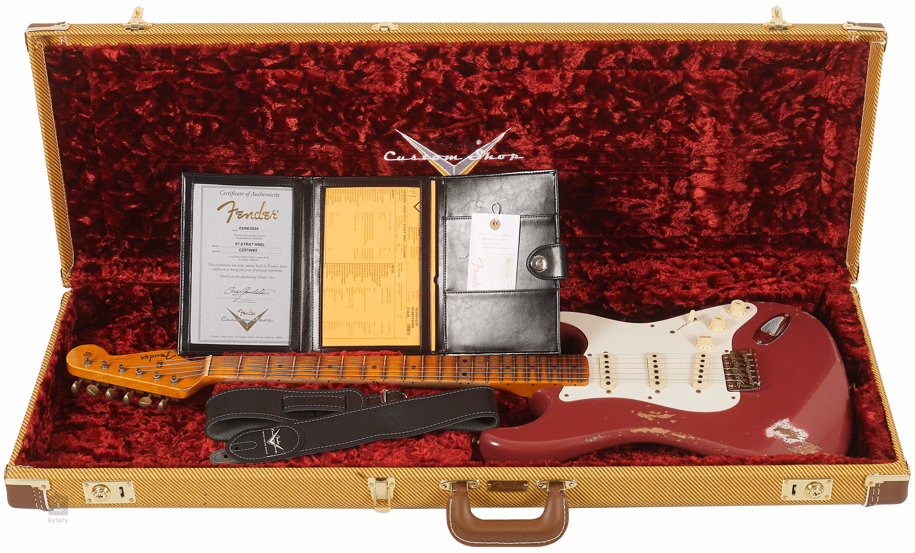 Kytara je dodávána v kufru spolu s certifikátem pravosti a kytarovým popruhem.