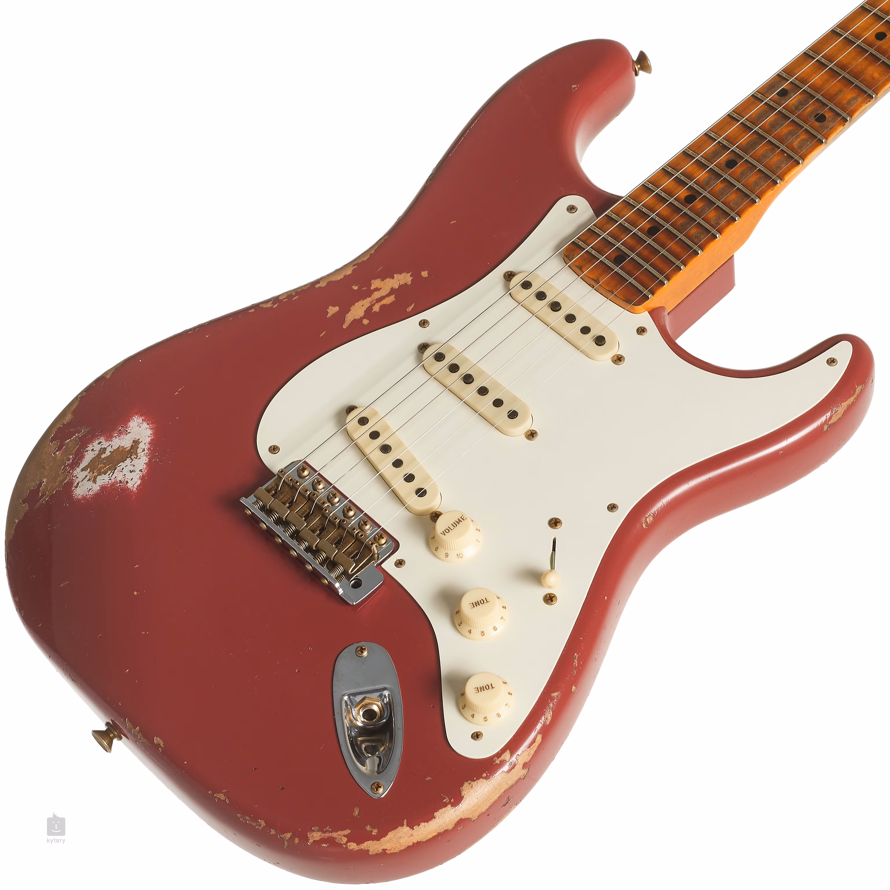 57 Stratocaster Heavy Relic Faded Aged Cimarron Red je elektrická kytara z dílen Fender Custom Shopu.
