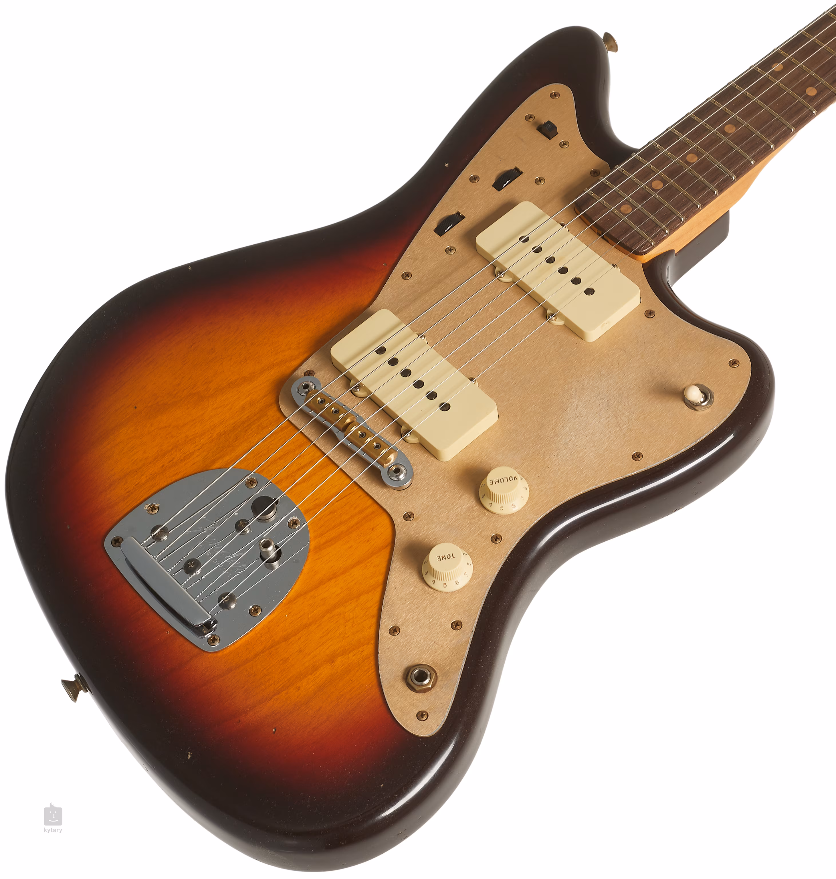 Elektrická kytara 1959 250K Jazzmaster Journeyman Relic RW Chocolate 3-Color Sunburst z dílen Fender Custom Shopu nabízí vzhled, zvuk a feel prvních Jazzmasterů z konce 50. let plus některé moderní modifikace, které náročnější muzikanti jistě ocení.