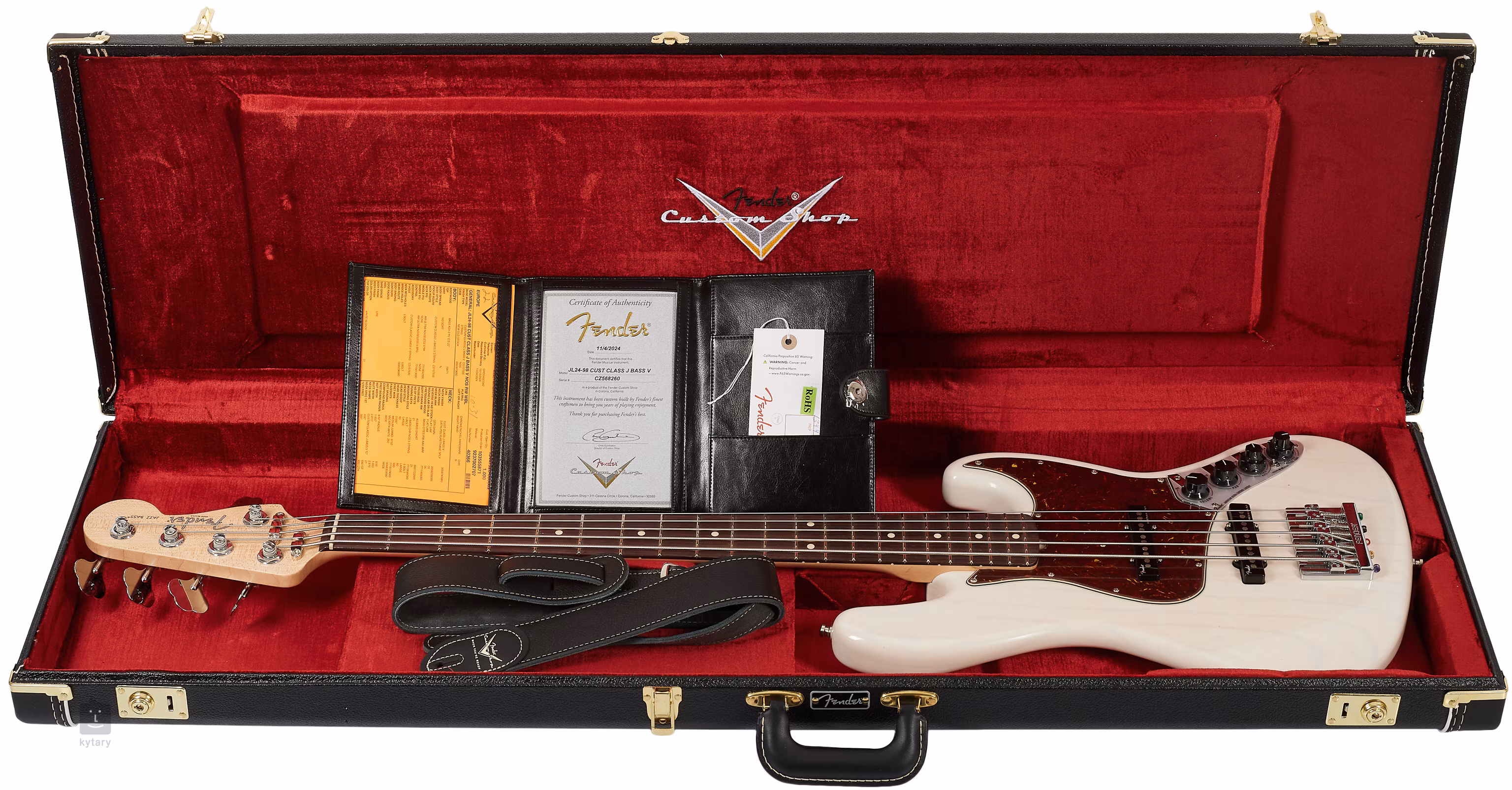 Baskytara je dodávána v kufru spolu s popruhem s certifikátem pravosti.