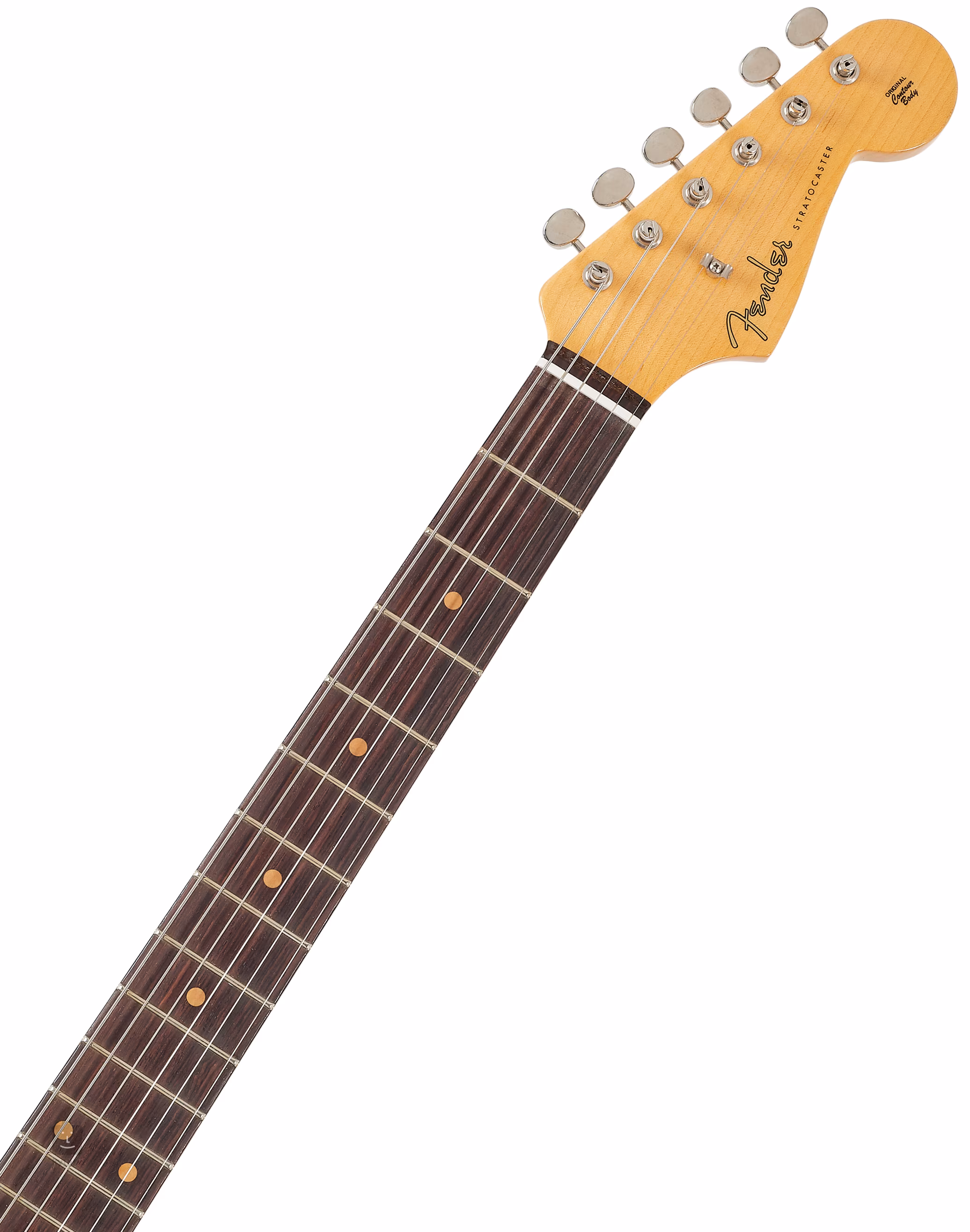 Fender Vintage Custom 59 Hardtail Strat Time Capsule je jedinečný nástroj z dílen Fender Custom Shopu. Kromě designových změn, které přinesl rok 1959 (palisandrový hmatník, třívrstvý mint green pickguard připevněný osmi, devíti nebo deseti šroubky v závislosti na měsíci výroby) se od běžných Strat modelů odlišuje pevnou string-through kobylkou, což zároveň zvedá i jeho sběratelskou hodnotu. Tělo kytary je zhotoveno z ručně vybíraných dvou kusů olše. Velmi tenká vrstva laku (finiš Time Capsule) bez umělé patiny v podobě relic/aged úprav umožňuje dřevu “dýchat” a dobře rezonovat. K javorovému krku (řez rift-sawn) s dobovým 1959 “D” profilem je přilepen palisandrový hmatník osazený jednadvaceti pražci velikosti Medium Vintage. Za zmínku stojí i složený rádius hmatníku (7.25" - 9.5"). Tři ručně vinuté 1959 Strat single-coil snímače, vintage '59 ovladače a elektronika, Closet Classic hardware, ladicí mechaniky ve vintage stylu a nultý pražec z kosti jenom podtrhují autentičnost nástroje. Kytara je dodávána v kufru spolu s kytarovým popruhem a certifikátem pravosti. Hmotnost: 3,60 kg.